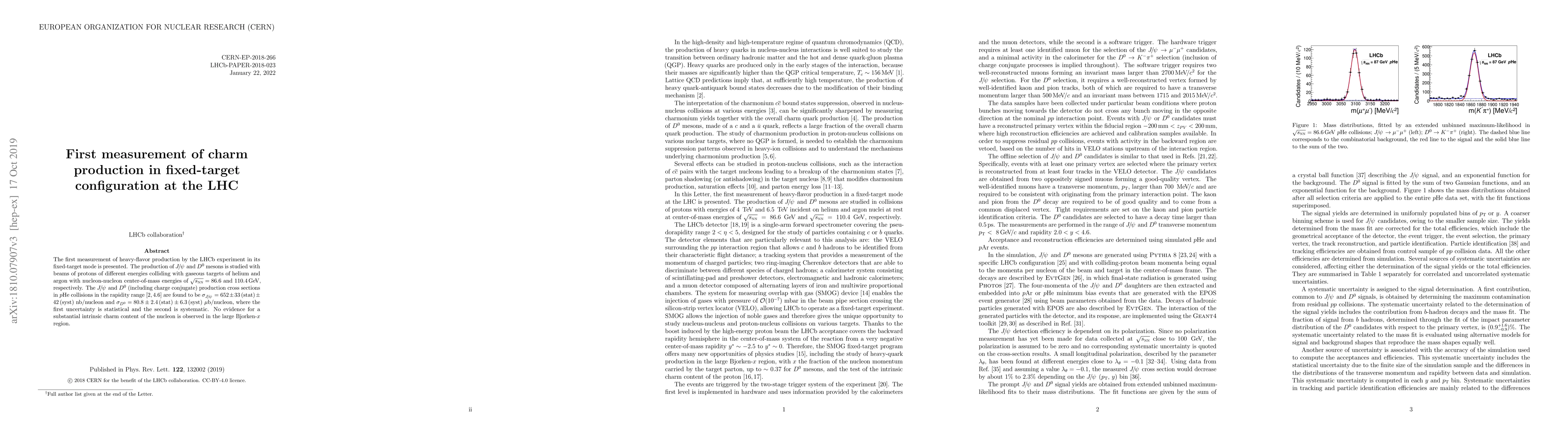 The first measurement of heavy-flavour production by the LHCb experiment in its fixed-target mode is presented. The production of $J/\psi$ and $D^0$ mesons is studied with beams of protons of different energies colliding with gaseous targets of helium and argon with nucleon-nucleon centre-of-mass energies of $\sqrt{s_{NN}} = 86.6 $ and $ 110.4$ ${\rm GeV}$, respectively. The $J/\psi$ and $D^0$ (including charge conjugate) production cross sections in $p{\rm He}$ collisions in the rapidity range $[2,4.6]$ are found to be $\sigma_{J/\psi} = 652 \pm 33$ (stat) $\pm 42$ (syst) nb$/$nucleon and $\sigma_{D^0} = 80.8 \pm 2.4$ (stat) $\pm 6.3$ (syst) $\mu$b$/$nucleon, where the first uncertainty is statistical and the second is systematic. No evidence for a substantial intrinsic charm content of the nucleon is observed in the large Bjorken-$x$ region.