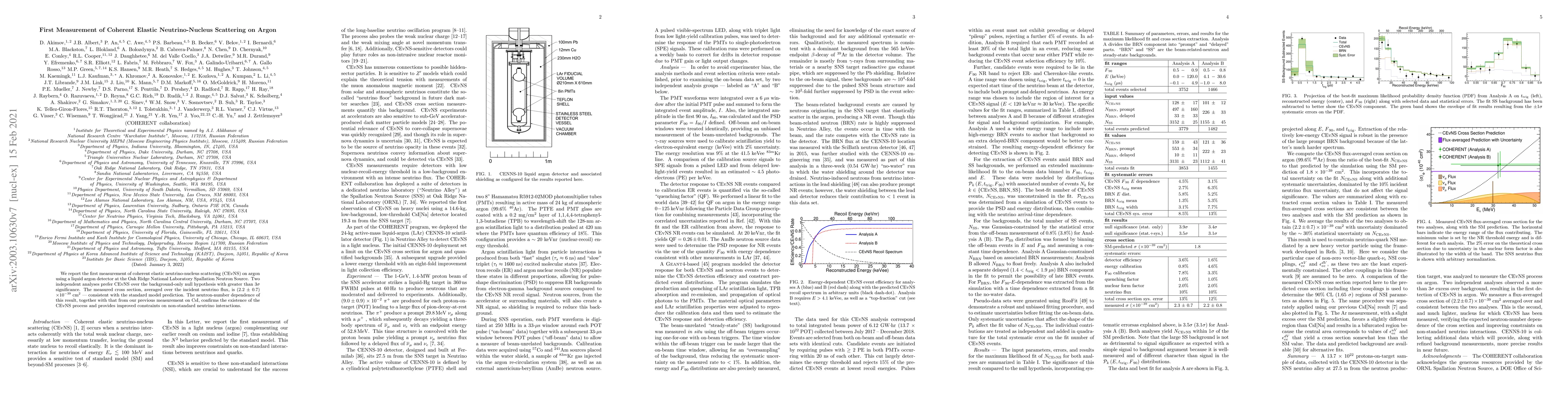 This paper reports the first detection of coherent elastic neutrino-nucleus scattering (CEνNS) on argon using a liquid argon detector, achieving a $3\sigma$ significance over background noise. The measured cross section aligns with the standard model prediction, reinforcing the CEνNS process and enhancing constraints on non-standard neutrino interactions.
