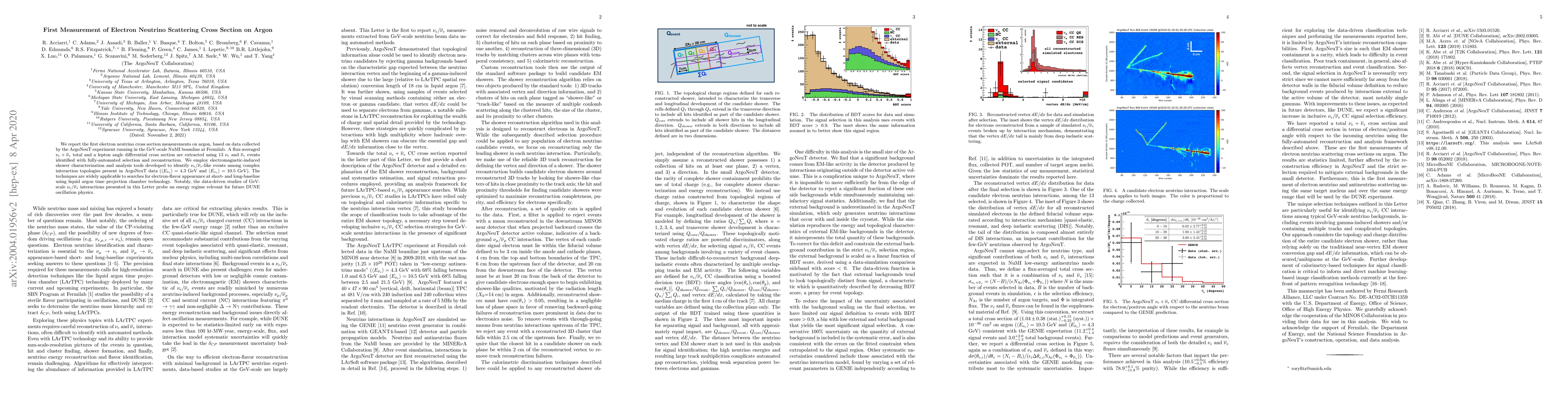 This paper reports the first measurements of electron neutrino scattering cross sections on argon using data from the ArgoNeuT experiment at Fermilab. The study extracts flux-averaged total and differential cross sections for electron neutrinos and antineutrinos, providing techniques applicable to future neutrino oscillation experiments.
