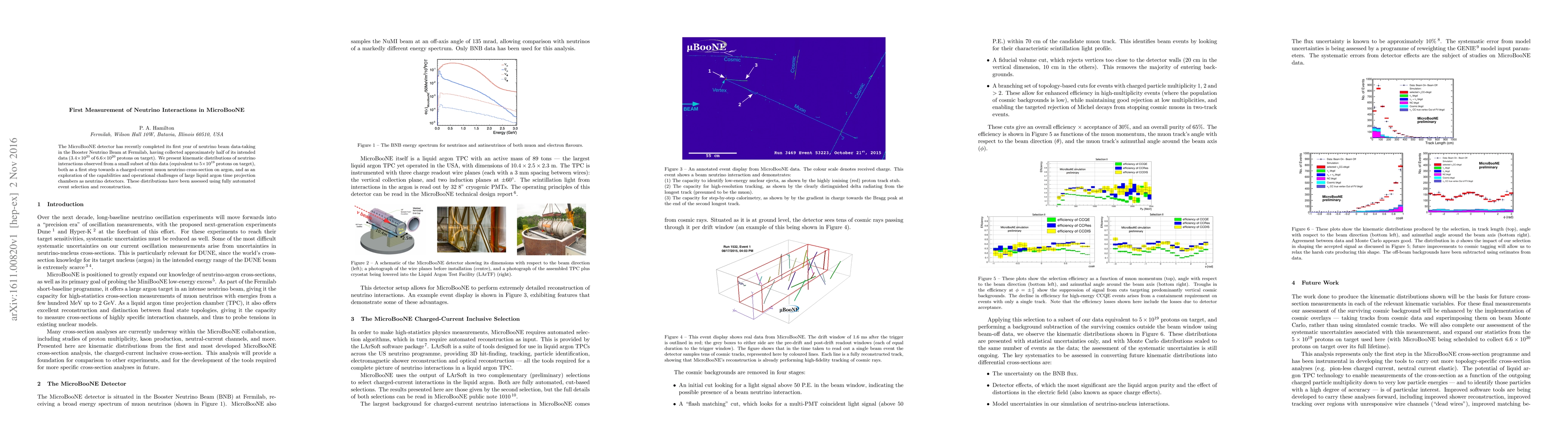 The MicroBooNE detector has collected initial neutrino interaction data from the Booster Neutrino Beam at Fermilab, providing kinematic distributions for a subset of this data. This serves as a preliminary step towards measuring the charged-current muon neutrino cross-section on argon and evaluates the operational challenges of large liquid argon time projection chambers.
