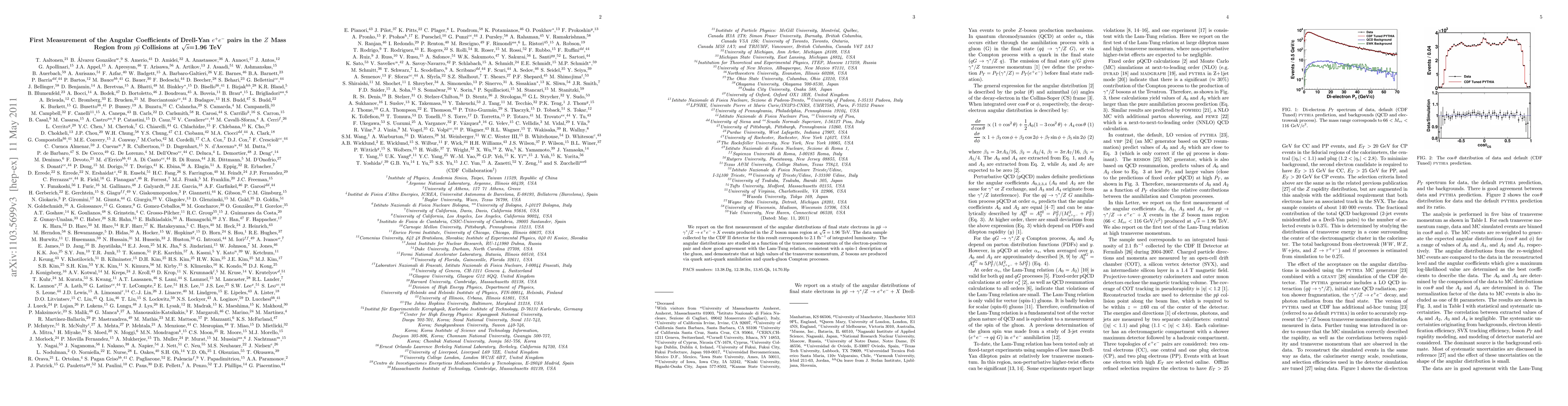This study reports the first measurement of angular coefficients for Drell-Yan $e^{+}e^{-}$ pairs in the Z mass region from $p\bar{p}$ collisions at $\sqrt{s} = 1.96$ TeV, showing agreement with the Lam-Tung relation and indicating $Z$ boson production via quark-antiquark annihilation and quark-gluon Compton processes at high transverse momentum.