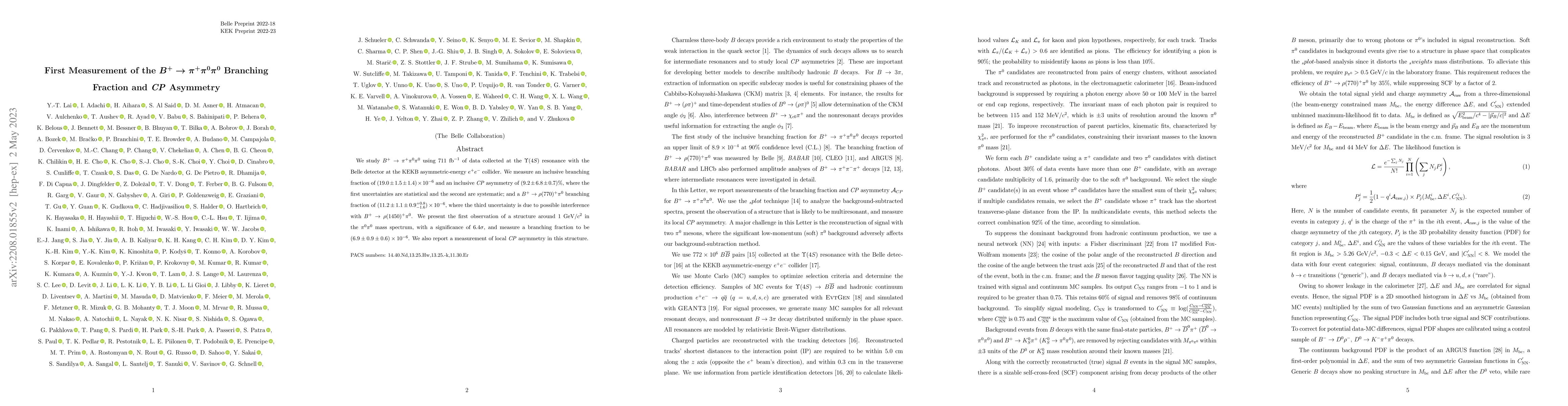 The Belle experiment at KEKB measures the first branching fraction and CP asymmetry for $B^{+}\to \pi^{+}\pi^{0}\pi^{0}$, finding $(19.0\pm 1.5\pm 1.4)\times 10^{-6}$ and $(9.2 \pm 6.8 \pm 0.7)\%$, respectively, and observes a structure around 1 GeV/$c^{2}$ in the $\pi^{0}\pi^{0}$ mass spectrum with 6.4$\sigma$ significance.
