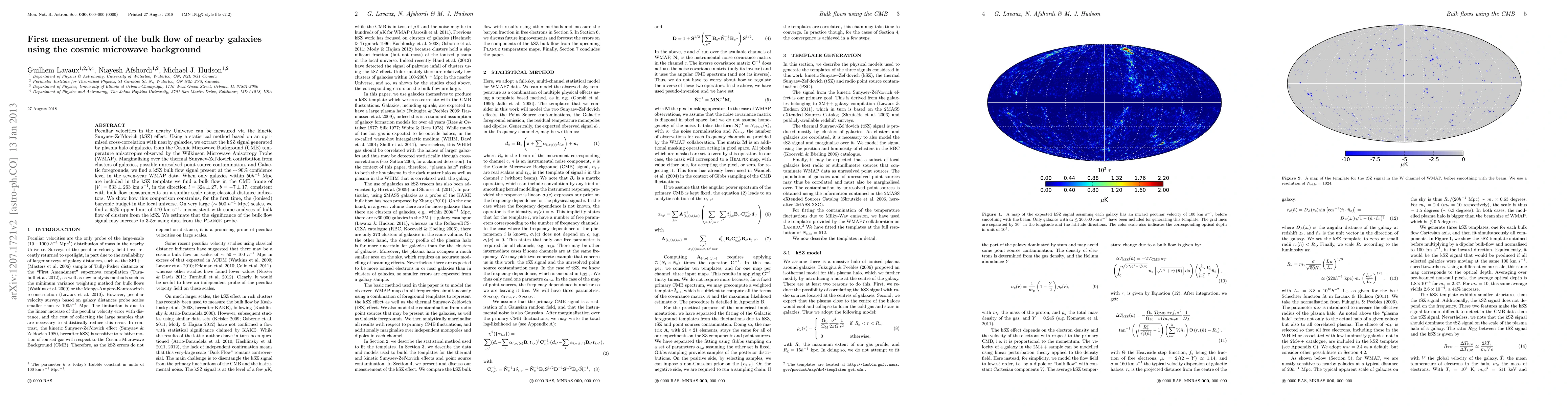 Peculiar velocities in the nearby Universe can be measured via the kinetic Sunyaev-Zel'dovich (kSZ) effect. Using a statistical method based on an optimised cross-correlation with nearby galaxies, we extract the kSZ signal generated by plasma halo of galaxies from the Cosmic Microwave Background (CMB) temperature anisotropies observed by the Wilkinson Microwave Anisotropy Probe (WMAP). Marginalising over the thermal Sunyaev-Zel'dovich contribution from clusters of galaxies, possible unresolved point source contamination, and Galactic foregrounds (dust, synchrotron and free-free emission), we report a kSZ bulk flow signal present at the 90% confidence level in the seven-year WMAP data. When only galaxies within 50 Mpc/h are included in the kSZ template we find a bulk flow in the CMB frame of |V|=533 +/- 263 km/s, in the direction l=324 +/- 27, b=-7 +/- 17, consistent with bulk flow measurements on a similar scale using classical distance indicators. We show how this comparison constrains the (ionised) baryonic budget in the local universe. On very large (~ 500 Mpc/h) scales, we find a 95% upper limit of 470 km/s, inconsistent with some analyses of bulk flow of clusters from the kSZ. We estimate that the significance of the bulk flow signal may increase to 3-5 sigma using data from the PLANCK probe.