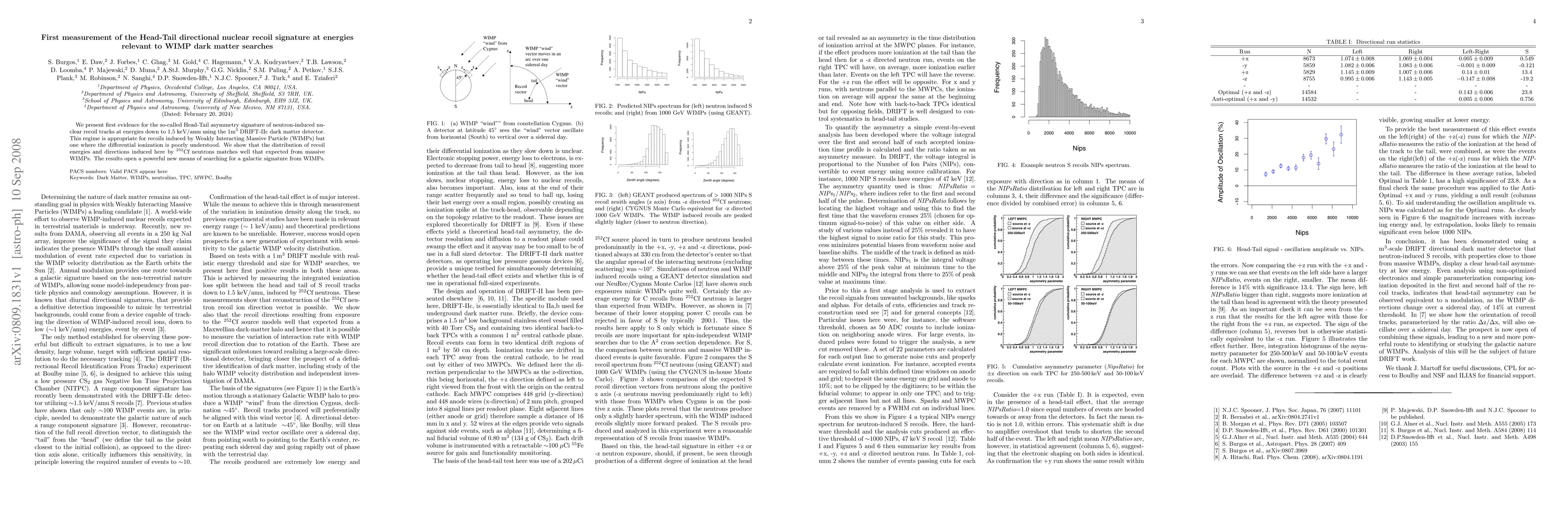 The DRIFT-IIc detector first measures the Head-Tail directional nuclear recoil signature in neutron-induced nuclear recoils at energies relevant to WIMP dark matter searches, providing evidence that matches expectations for WIMP-induced recoils. This discovery offers a new method for detecting galactic signatures from Weakly Interacting Massive Particles.