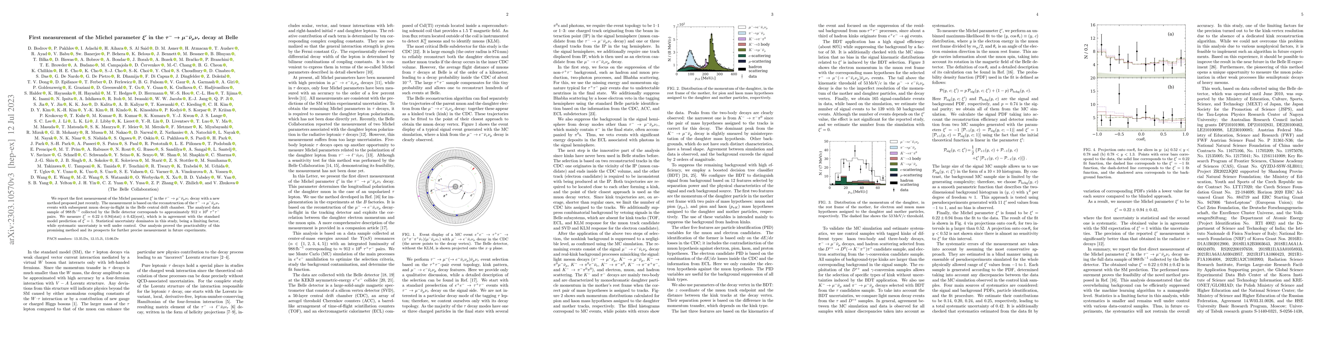 This paper reports the first measurement of the Michel parameter $\xi^\prime$ in the $\tau^-\to\mu^-\bar{\nu}_\mu\nu_\tau$ decay using a new method, finding $\xi^\prime=0.22\pm0.94(\text{stat})\pm0.42(\text{syst})$, consistent with the standard model prediction, with statistical uncertainty being the main limitation.