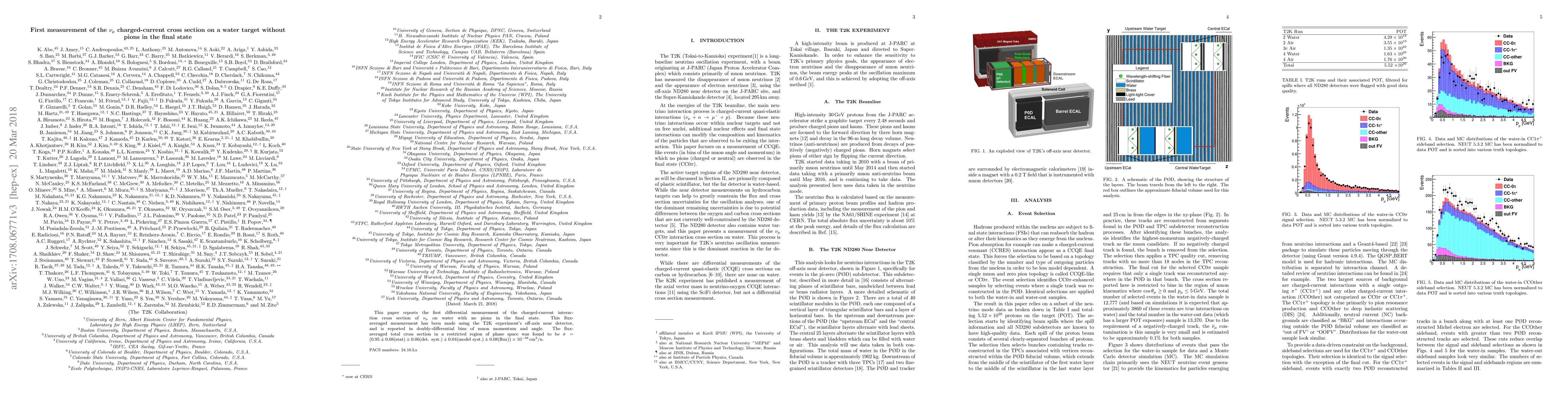 This paper presents the first differential measurement of $\nu_{\mu}$ charged-current interactions on water without pions in the final state, using the T2K experiment's off-axis near detector, yielding a flux-averaged total cross section of $0.95 \times 10^{-38} \mbox{cm}^2$ per nucleon.