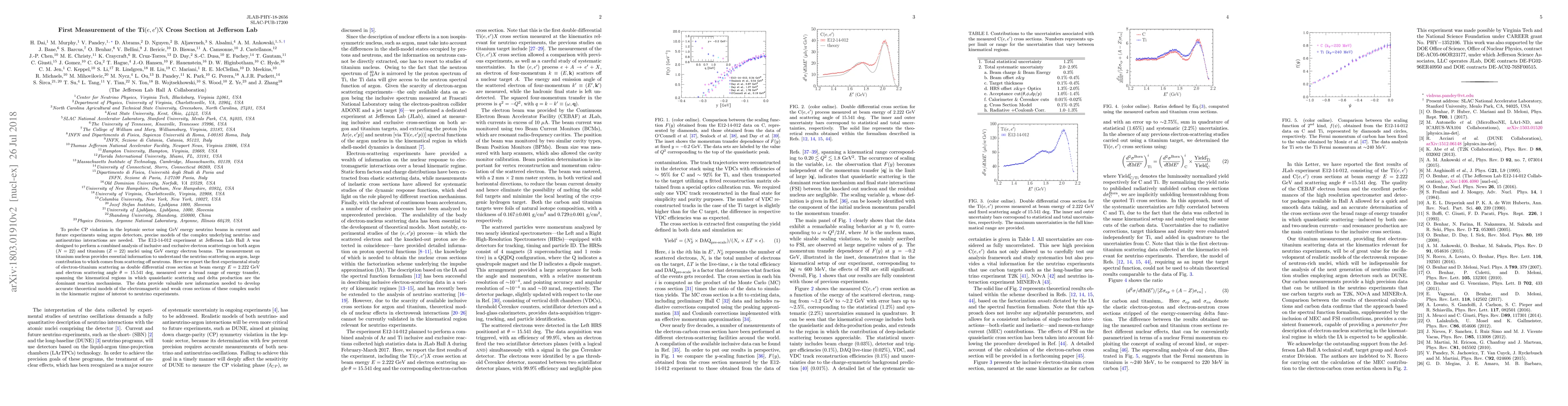 To probe CP violation in the leptonic sector using GeV energy neutrino beams in current and future experiments using argon detectors, precise models of the complex underlying neutrino and antineutrino interactions are needed. The E12-14-012 experiment at Jefferson Lab Hall A was designed to perform a combined analysis of inclusive and exclusive electron scatterings on both argon ($N = 22$) and titanium ($Z = 22$) nuclei using GeV energy electron beams. The measurement on titanium nucleus provides essential information to understand the neutrino scattering on argon, large contribution to which comes from scattering off neutrons. Here we report the first experimental study of electron-titanium scattering as double differential cross section at beam energy $E=2.222$ GeV and electron scattering angle $\theta = 15.541$ deg, measured over a broad range of energy transfer, spanning the kinematical regions in which quasielastic scattering and delta production are the dominant reaction mechanisms. The data provide valuable new information needed to develop accurate theoretical models of the electromagnetic and weak cross sections of these complex nuclei in the kinematic regime of interest to neutrino experiments.