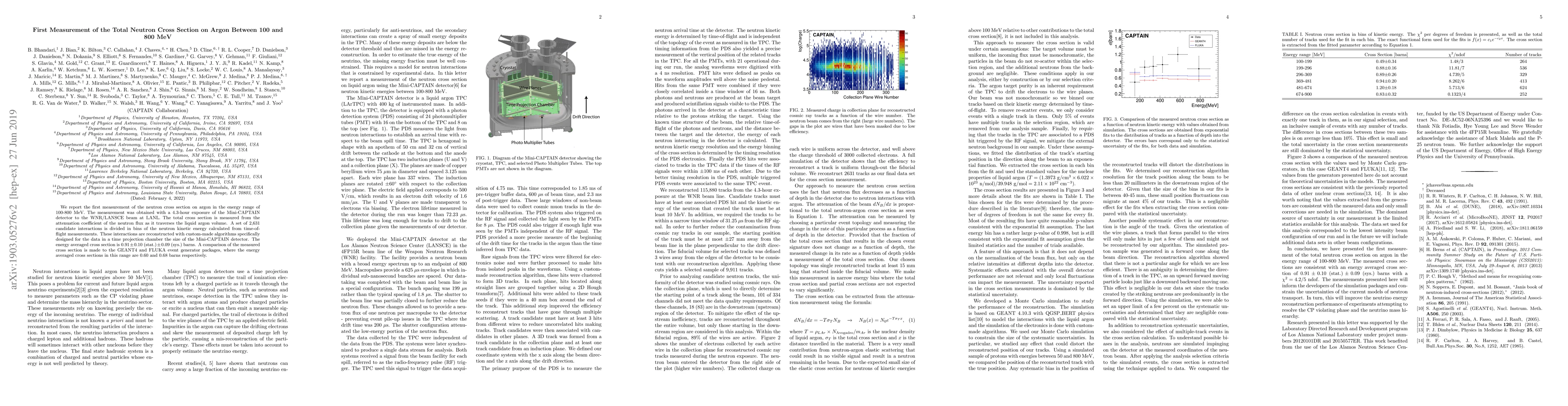 The research utilized a neutron beam on a target of argon to measure the total neutron cross-section in the energy range of 100-800 MeV.