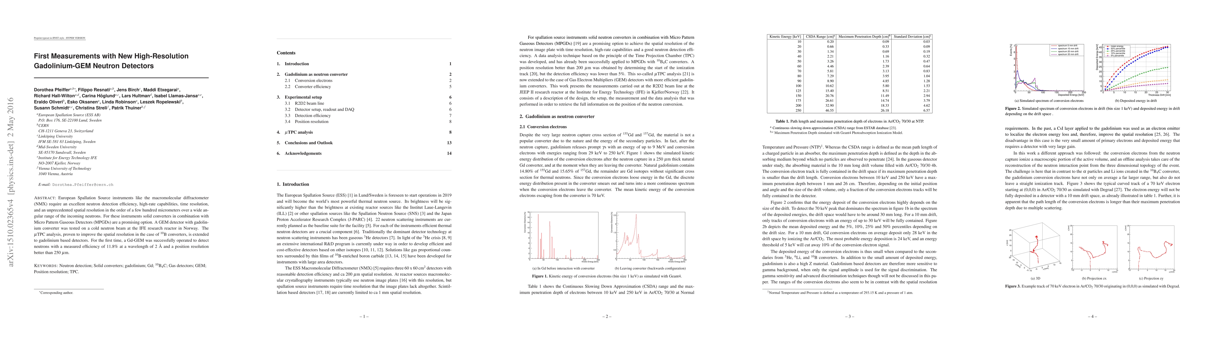 European Spallation Source instruments like the macromolecular diffractometer, NMX, require an excellent neutron detection efficiency, high-rate capabilities, time resolution, and an unprecedented spatial resolution in the order of a few hundred micrometers over a wide angular range of the incoming neutrons. For these instruments solid converters in combination with Micro Pattern Gaseous Detectors (MPGDs) are a promising option. A GEM detector with gadolinium converter was tested on a cold neutron beam at the IFE research reactor in Norway. The {\mu}TPC analysis, proven to improve the spatial resolution in the case of $^{10}$B converters, is extended to gadolinium based detectors. For the first time, a Gd-GEM was successfully operated to detect neutrons with a measured efficiency of 11.8% at a wavelength of 2 {\AA} and a position resolution better than 250 {\mu}m.