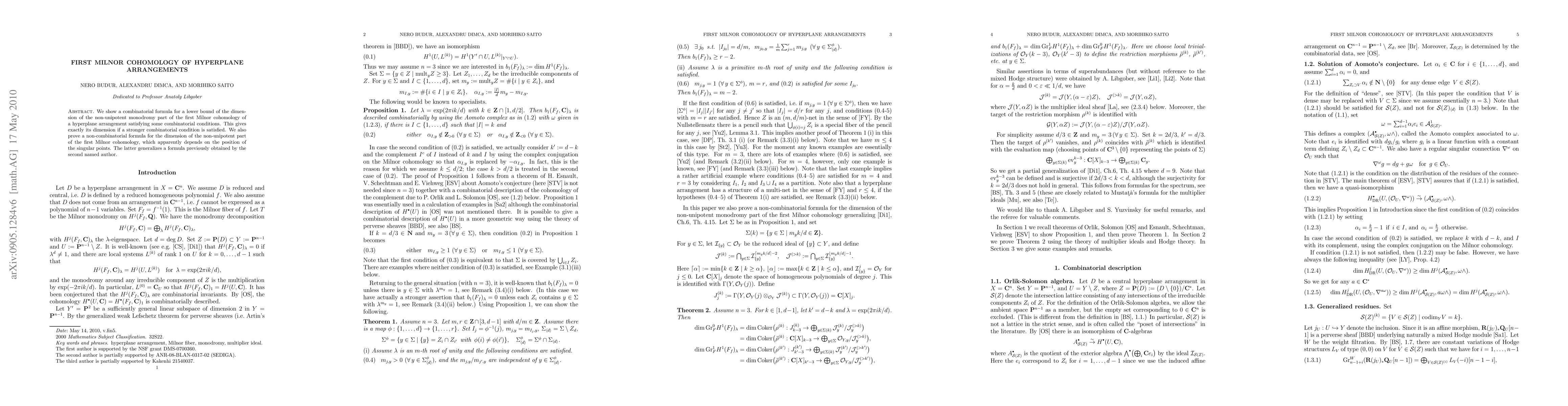 This paper presents a combinatorial formula for the lower bound of the first Milnor cohomology's non-unipotent monodromy part dimension in hyperplane arrangements, with exact dimension under stronger conditions. It also introduces a non-combinatorial formula dependent on singular point positions, generalizing prior work.