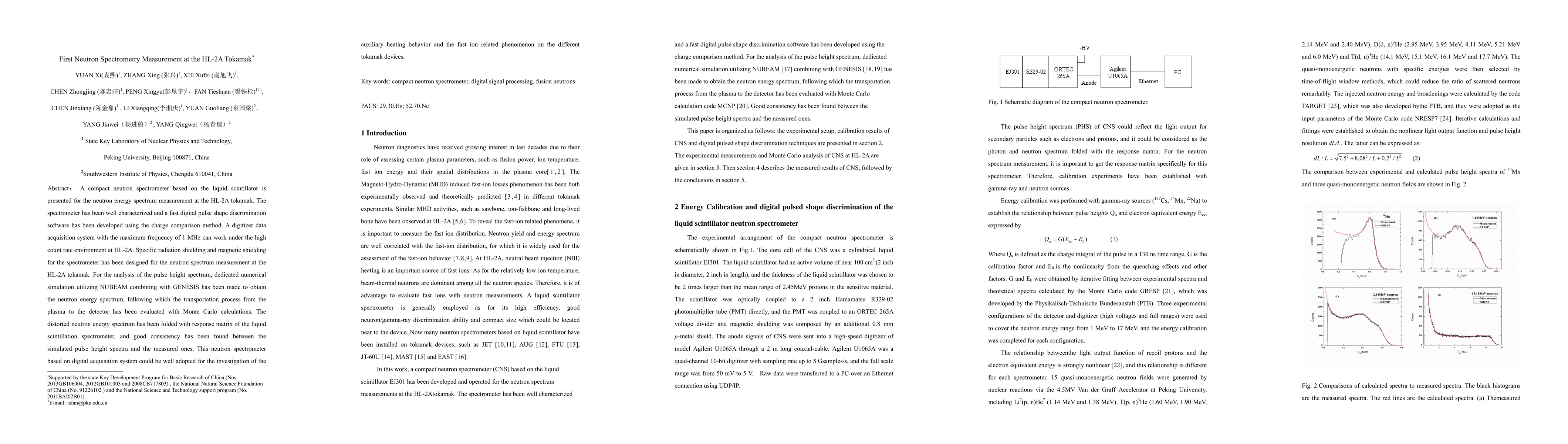 This paper presents a new compact neutron spectrometer for energy spectrum measurements at the HL-2A tokamak, utilizing a liquid scintillator and digital acquisition. The developed spectrometer and associated shielding were validated through simulations and measurements, showing good consistency and potential for studying auxiliary heating and fast-ion phenomena.