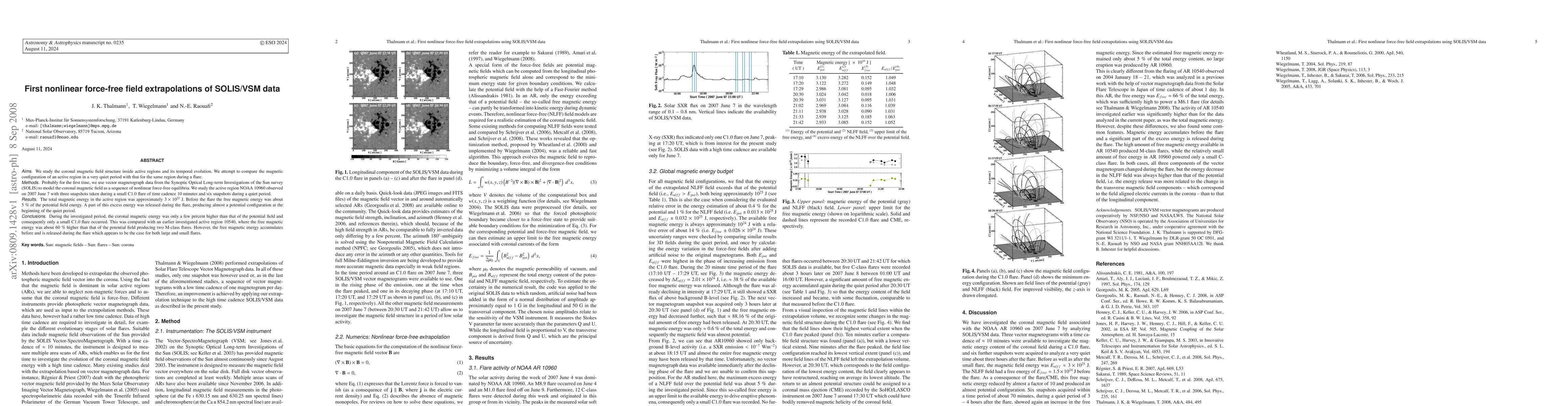 This paper presents the first nonlinear force-free field extrapolations using SOLIS/VSM data to model the coronal magnetic field in active regions. It compares the magnetic configuration of an active region during a quiet period and a small C1.0 flare, finding that the excess free magnetic energy released during the flare reduces the total magnetic energy, leading to a small flare.