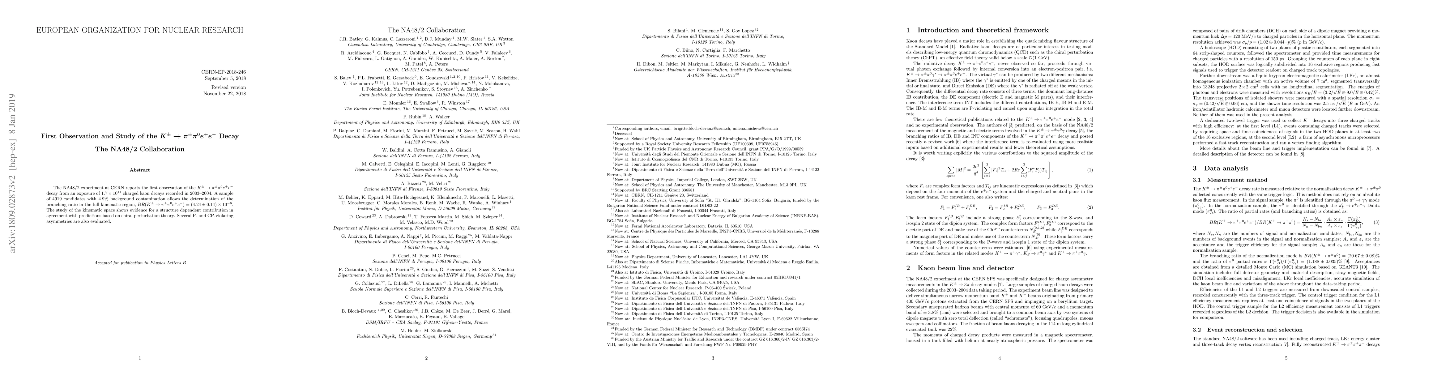 The NA48/2 experiment at CERN reports the first observation of the $K^\pm \to \pi^\pm \pi^0 e^+ e^-$ decay, determining a branching ratio of $(4.24 \pm 0.14) \times 10^{-6}$. The study reveals evidence for a structure dependent contribution in line with chiral perturbation theory predictions.