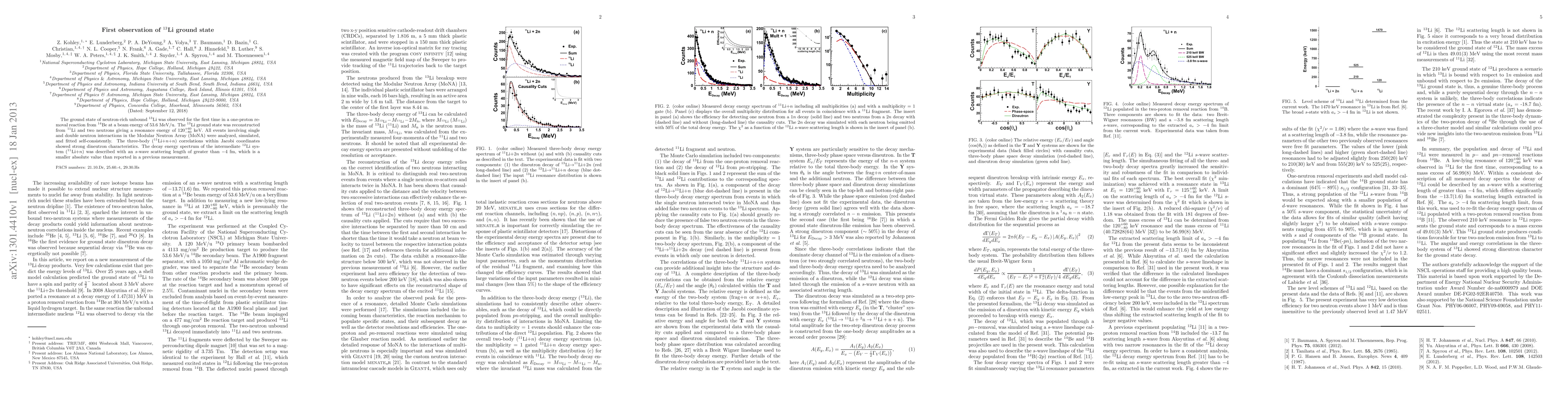 The ground state of neutron-rich unbound $^{13}$Li was observed for the first time in a one-proton removal reaction from $^{14}$Be at a beam energy of 53.6 MeV/u. The $^{13}$Li ground state was reconstructed from $^{11}$Li and two neutrons giving a resonance energy of 120$^{+60}_{-80}$ keV. All events involving single and double neutron interactions in the Modular Neutron Array (MoNA) were analyzed, simulated, and fitted self-consistently. The three-body ($^{11}$Li+$n+n$) correlations within Jacobi coordinates showed strong dineutron characteristics. The decay energy spectrum of the intermediate $^{12}$Li system ($^{11}$Li+$n$) was described with an s-wave scattering length of greater than -4 fm, which is a smaller absolute value than reported in a previous measurement.