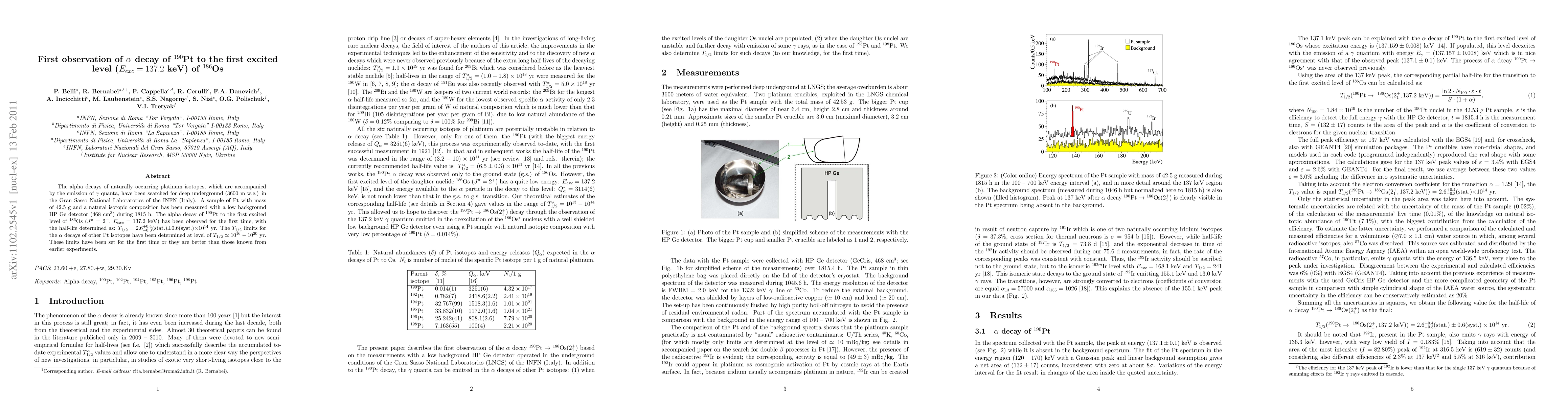 Researchers have observed a rare alpha decay of 190-Pt to the first excited level of 186-Os for the first time, with a half-life of 2.6 billion years.