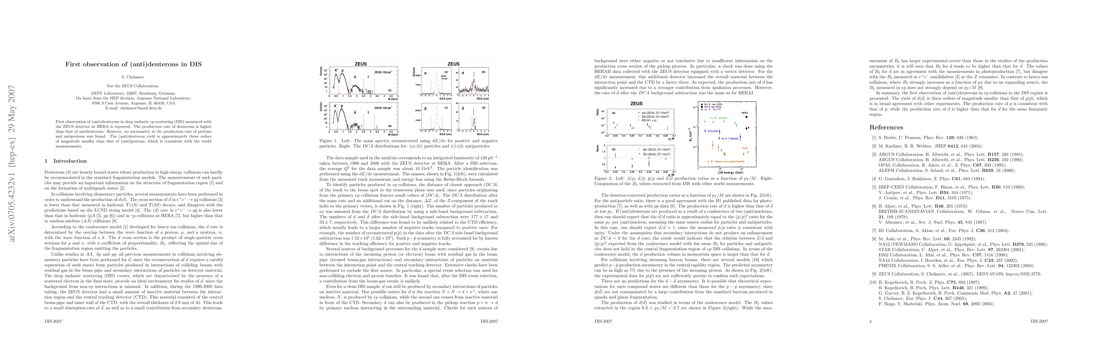 First observation of (anti)deuterons in deep inelastic ep scattering (DIS) measured with the ZEUS detector at HERA is reported. The production rate of deuterons is higher than that of antideuterons. However, no asymmetry in the production rate of protons and antiprotons was found. The (anti)deuteron yield is approximately three orders of magnitude smaller than that of (anti)protons, which is consistent with the world measurements.