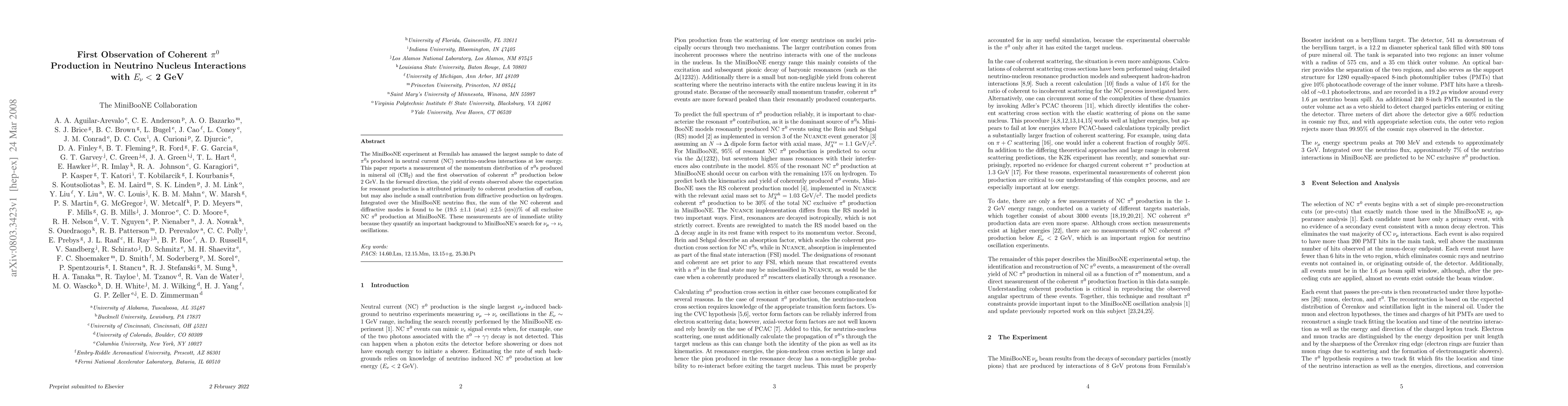 The MiniBooNE experiment reports the first observation of coherent $\pi^0$ production in low-energy neutrino-nucleus interactions, revealing a significant contribution from coherent production off carbon in the forward direction. These findings quantify an important background for the experiment's search for muon neutrino to electron neutrino oscillations.