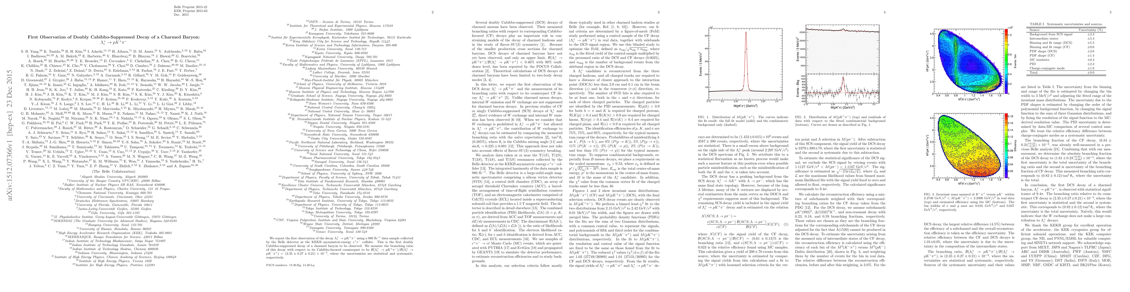 We report the first observation of the decay $\Lambda^{+}_{c} \rightarrow p K^{+} \pi^{-}$ using a 980 $\mathrm{fb^{-1}}$ data sample collected by the Belle detector at the KEKB asymmetric-energy $e^{+}e^{-}$ collider. This is the first doubly Cabibbo-suppressed decay of a charmed baryon to be observed. We measure the branching ratio of this decay with respect to its Cabibbo-favored counterpart to be $\mathcal{B}(\Lambda^{+}_{c} \rightarrow p K^{+} \pi^{-})/\mathcal{B}(\Lambda^{+}_{c} \rightarrow p K^{-} \pi^{+})=(2.35\pm0.27\pm0.21)\times10^{-3}$, where the uncertainties are statistical and systematic, respectively.
