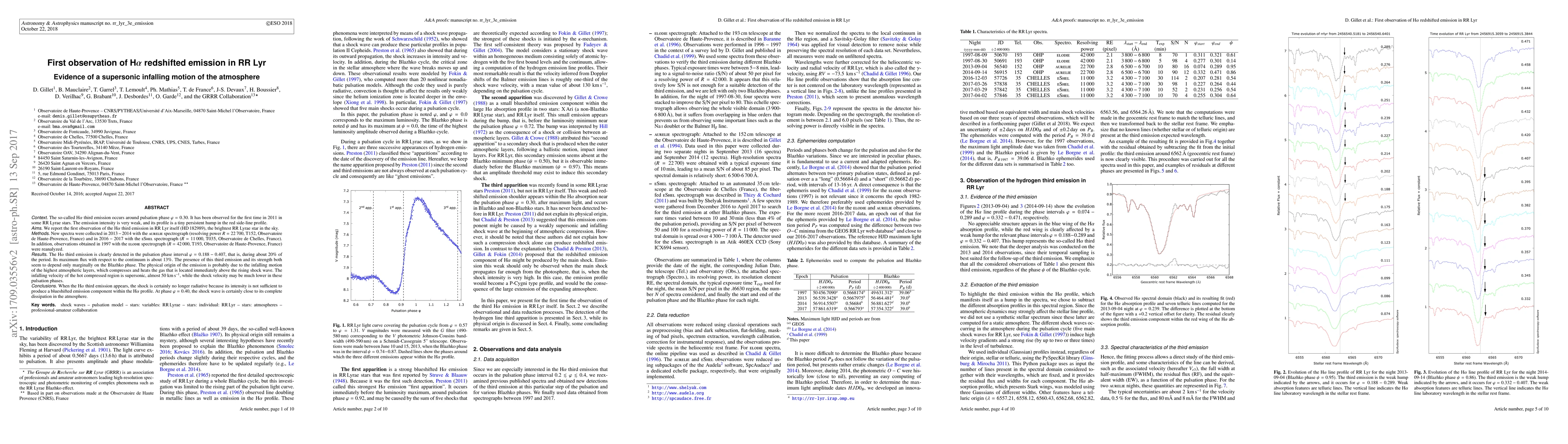 The so-called H$\alpha$ third emission occurs around pulsation phase $\varphi$=0.30. It has been observed for the first time in 2011 in some RR Lyrae stars. The emission intensity is very weak, and its profile is a tiny persistent hump in the red side-line profile. We report the first observation of the H$\alpha$ third emission in RR Lyr itself (HD 182989), the brightest RR Lyrae star in the sky. New spectra were collected in 2013-2014 with the Aurelie}spectrograph (resolving power R=22$\,$700, T152, Observatoire de Haute-Provence, France) and in 2016-2017 with the eShel spectrograph (R=11$\,$000, T035, Observatoire de Chelles, France). In addition, observations obtained in 1997 with the Elodie spectrograph (R=42$\,$000, T193, Observatoire de Haute-Provence, France) were reanalyzed. The H$\alpha$ third emission is clearly detected in the pulsation phase interval $\varphi$=0.188-0.407, that is, during about 20% of the period. Its maximum flux with respect to the continuum is about 13%. The presence of this third emission and its strength both seem to depend only marginally on the Blazhko phase. The physical origin of the emission is probably due to the infalling motion of the highest atmospheric layers, which compresses and heats the gas that is located immediately above the rising shock wave. The infalling velocity of the hot compressed region is supersonic, almost 50 km$\cdot$s$^{-1}$, while the shock velocity may be much lower in these pulsation phases. When the H$\alpha$ third emission appears, the shock is certainly no longer radiative because its intensity is not sufficient to produce a blueshifted emission component within the H$\alpha$ profile. At phase $\varphi$=0.40, the shock wave is certainly close to its complete dissipation in the atmosphere.
