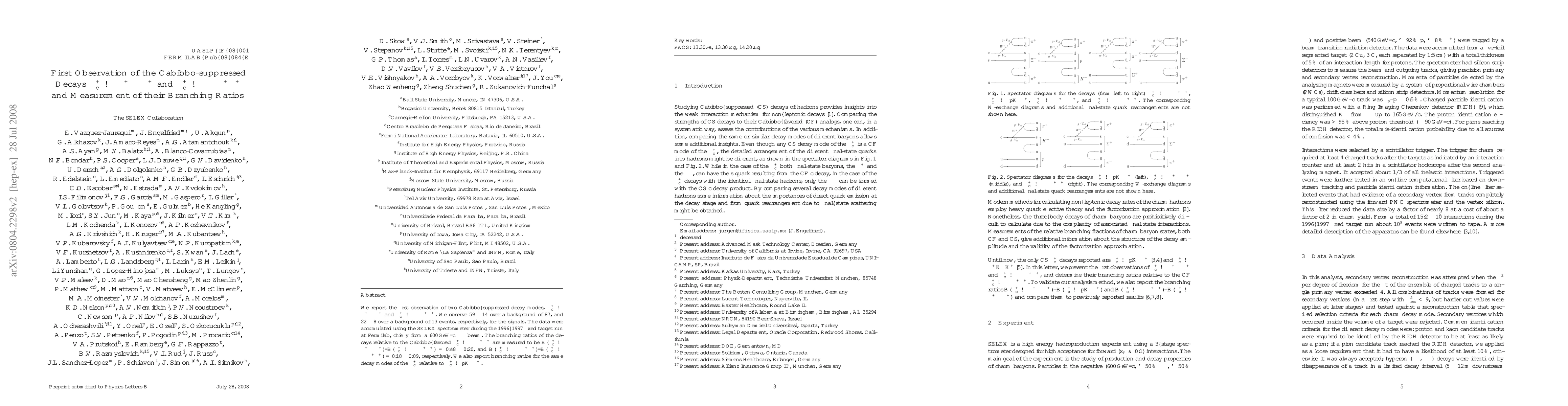 This paper reports the first observation of two Cabibbo-suppressed decay modes of Xi_c+ particles, measuring their branching ratios relative to the favored decay mode. The observed branching ratios are B(Xi_c+ -> Sigma+ pi- pi+)/B(Xi_c+ -> Xi- pi+ pi+) = 0.48±0.20 and B(Xi_c+ -> Sigma- pi+ pi+)/B(Xi_c+ -> Xi- pi+ pi+) = 0.18±0.09.