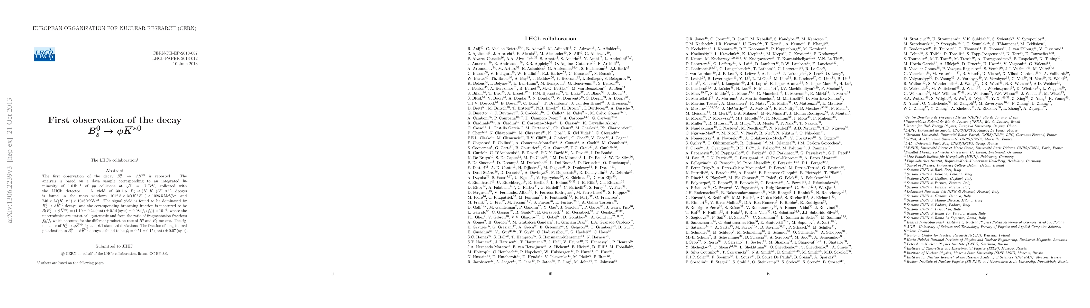 The first observation of the decay $B_s^0 \rightarrow \phi \bar{K}^{*0}$ is reported. The analysis is based on a data sample corresponding to an integrated luminosity of 1.0 fb$^{-1}$ of $pp$ collisions at $\sqrt{s} = 7 TeV$, collected with the LHCb detector. A yield of $30 \pm 6$ $B_s^0 \rightarrow (K^+K^-)(K^-\pi^+)$ decays is found in the mass windows $1012.5 < M(K^+K^-) < 1026.5 MeV/c^2$ and $746 < M(K^-\pi^+)< 1046 MeV/c^2$. The signal yield is found to be dominated by $B_s^0 \rightarrow \phi \bar{K}^{*0}$ decays, and the corresponding branching fraction is measured to be ${\cal B}(B_s^0 \rightarrow \phi \bar{K}^{*0}) = (1.10 \pm 0.24 (stat) \pm 0.14 (syst) \pm 0.08 (f_d/f_s)) \times 10^{-6}$, where the uncertainties are statistical, systematic and from the ratio of fragmentation fractions $f_d/f_s$ which accounts for the different production rate of $B^0$ and $B_s^0$ mesons. The significance of $B_s^0 \rightarrow \phi \bar{K}^{*0}$ signal is 6.1 standard deviations. The fraction of longitudinal polarization in $B_s^0 \rightarrow \phi \bar{K}^{*0}$ decays is found to be $f_0 = 0.51 \pm 0.15 (stat) \pm 0.07 (syst)$.
