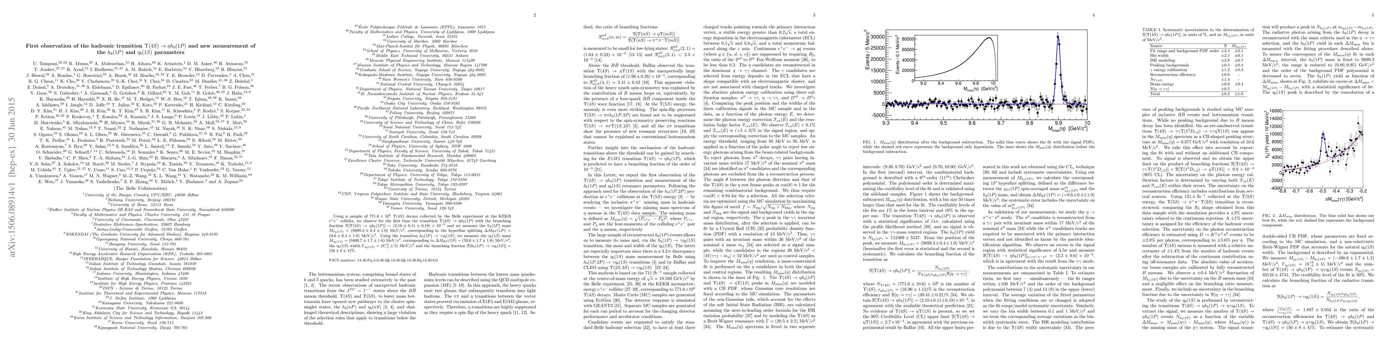 Researchers at Belle experiment observed the first transition of $η(4S)$ to $λ h_b(1P)$ with a branching fraction of $2.18 imes 10^{-3}$ and measured the masses of $h_b(1P)$ and $λ_b(1S)$.