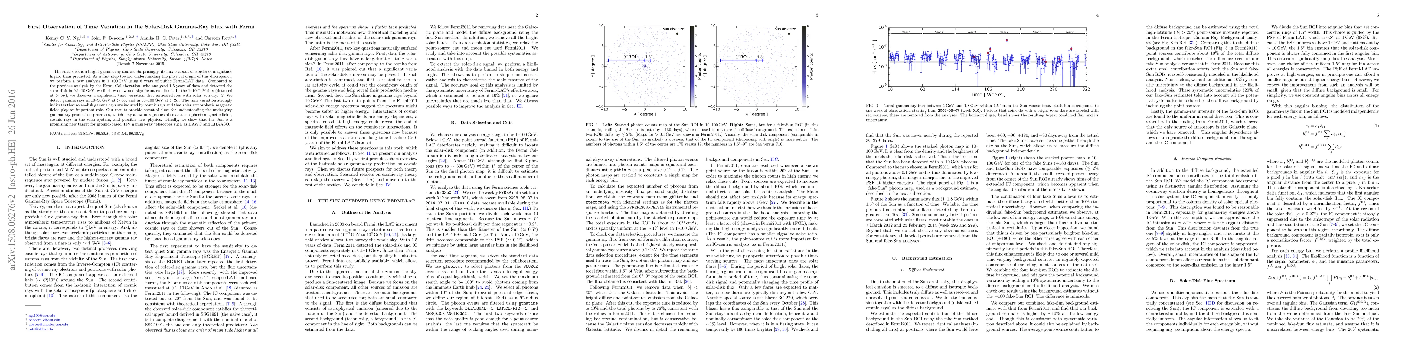 The solar disk is a bright gamma-ray source. Surprisingly, its flux is about one order of magnitude higher than predicted. As a first step toward understanding the physical origin of this discrepancy, we perform a new analysis in 1-100 GeV using 6 years of public Fermi-LAT data. Compared to the previous analysis by the Fermi Collaboration, who analyzed 1.5 years of data and detected the solar disk in 0.1-10 GeV, we find two new and significant results: 1. In the 1-10 GeV flux (detected at $>5\sigma$), we discover a significant time variation that anticorrelates with solar activity. 2. We detect gamma rays in 10-30 GeV at $>5\sigma$, and in 30-100 GeV at $> 2\sigma$. The time variation strongly indicates that solar-disk gamma rays are induced by cosmic rays and that solar atmospheric magnetic fields play an important role. Our results provide essential clues for understanding the underlying gamma-ray production processes, which may allow new probes of solar atmospheric magnetic fields, cosmic rays in the solar system, and possible new physics. Finally, we show that the Sun is a promising new target for ground-based TeV gamma-ray telescopes such as HAWC and LHAASO.