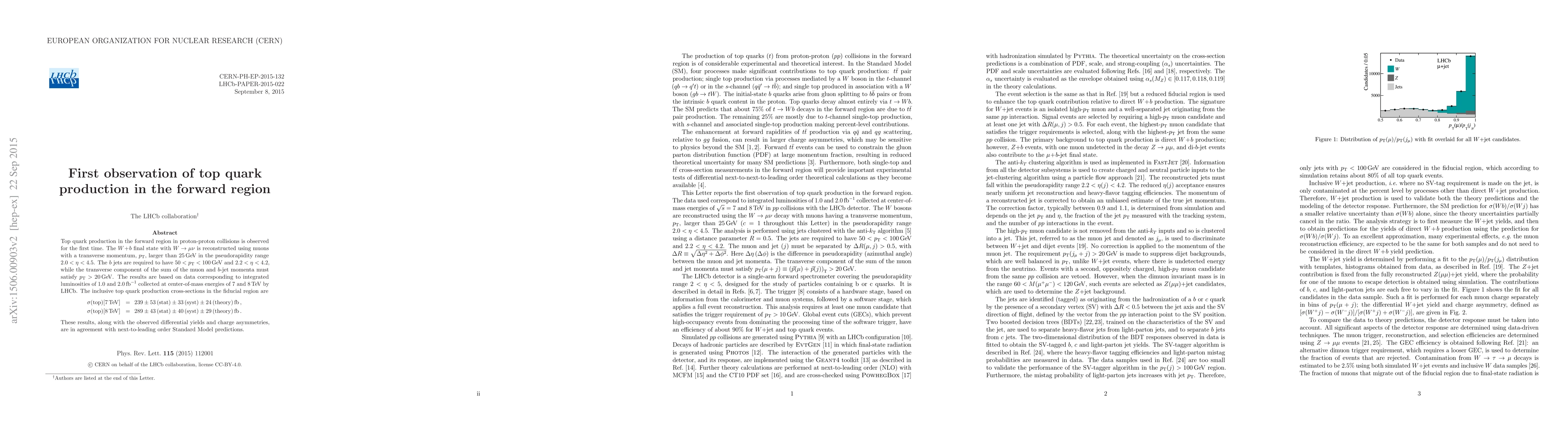 Researchers at LHCb have observed top quark production in the forward region of proton-proton collisions for the first time, measuring cross-sections that align with Standard Model predictions.