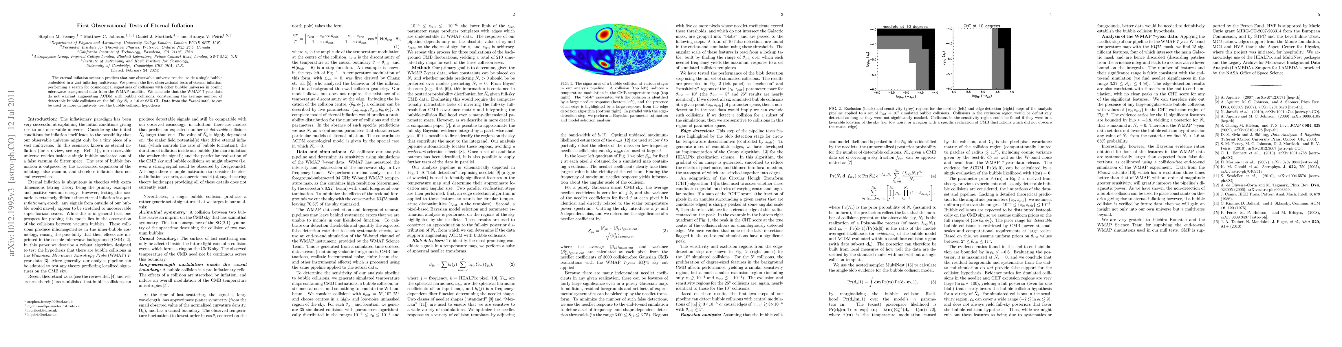 This paper presents the first observational tests of eternal inflation by searching for signatures of bubble universe collisions in WMAP 7-year cosmic microwave background data, concluding that the data does not support the hypothesis and constrains the number of detectable collisions to be less than 1.6 at 68% confidence. Future tests using Planck satellite data may provide more definitive results.