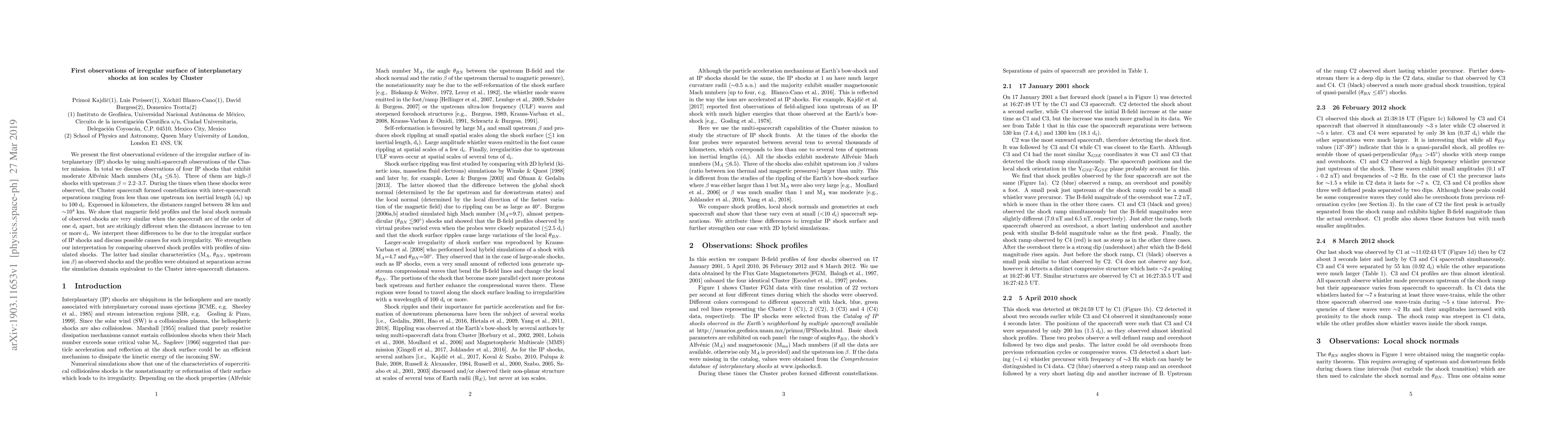 This paper presents the first observational evidence of the irregular surface of interplanetary shocks at ion scales using Cluster mission data. The study reveals significant differences in magnetic field profiles and shock normals when spacecraft separations exceed ten ion inertial lengths, suggesting the shocks' irregular surfaces, which are further supported by comparisons with simulated shock profiles.