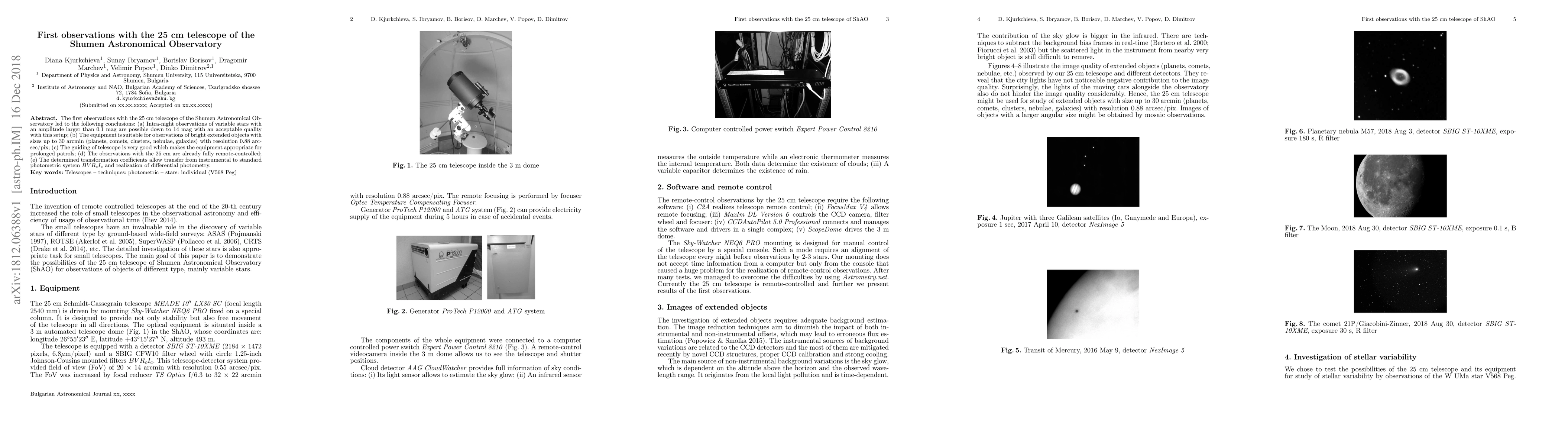 The 25 cm telescope at Shumen Observatory can capture high-quality images of variable stars up to 14 magnitude and extended objects like planets and galaxies, with good guiding capabilities.