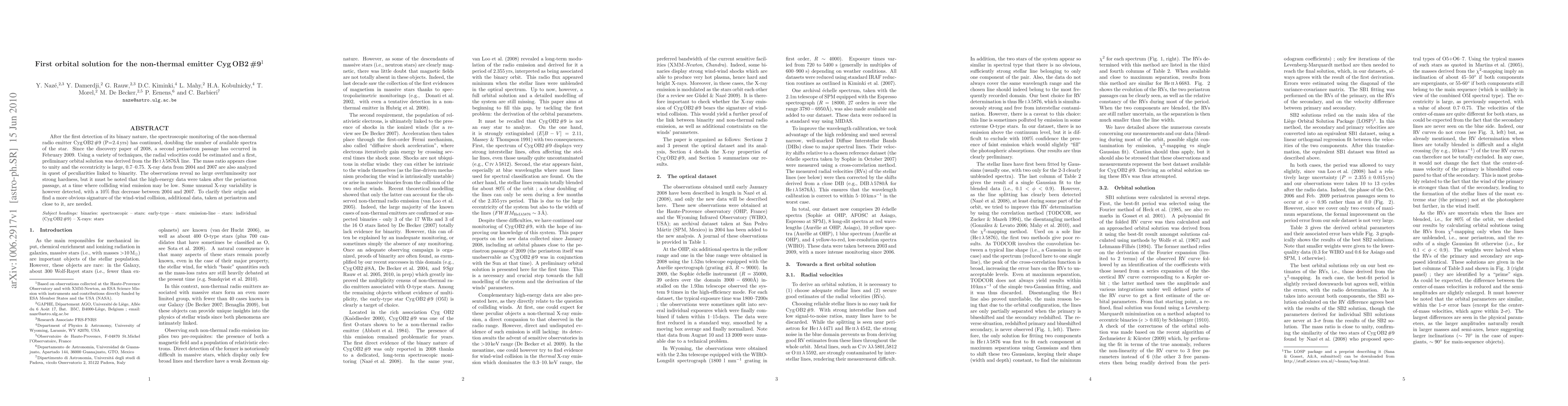Astronomers have found a preliminary orbital solution for the non-thermal radio emitter Cyg OB2 #9, revealing a massive star in a binary system with a large eccentric orbit.