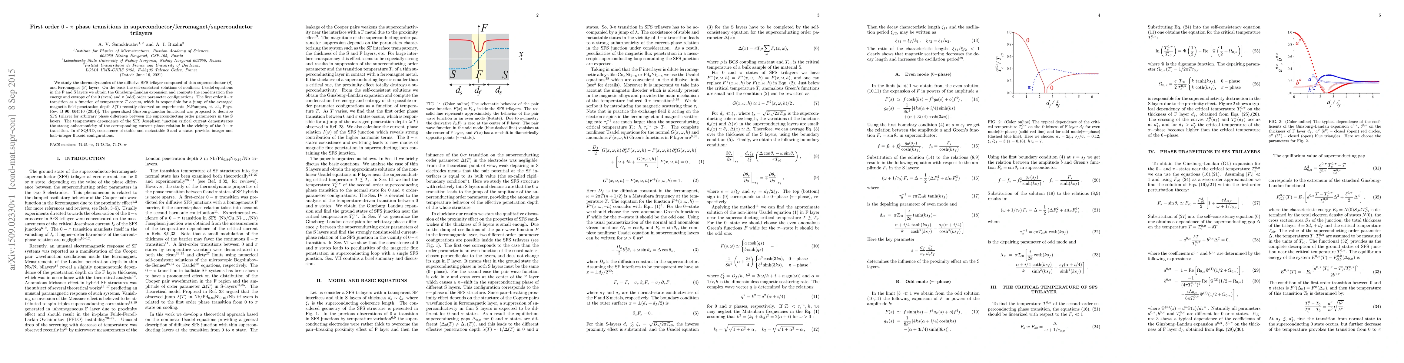 Researchers studied thermodynamics of superconductor/ferromagnet/superconductor trilayers, discovering a first-order $0$-$π$ phase transition that affects magnetic field penetration depth and Josephson junction critical current.