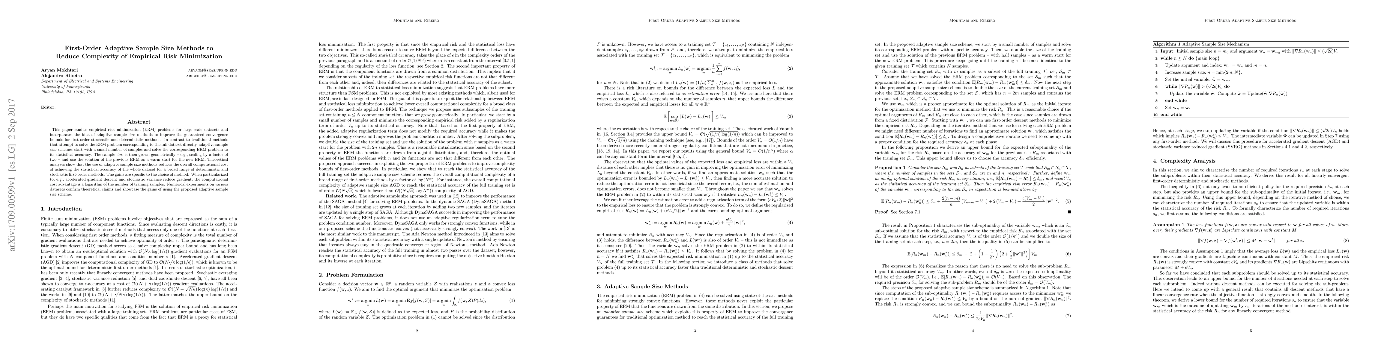 This paper proposes adaptive sample size methods to improve convergence bounds for empirical risk minimization problems, reducing computational costs of achieving statistical accuracy in large-scale datasets.