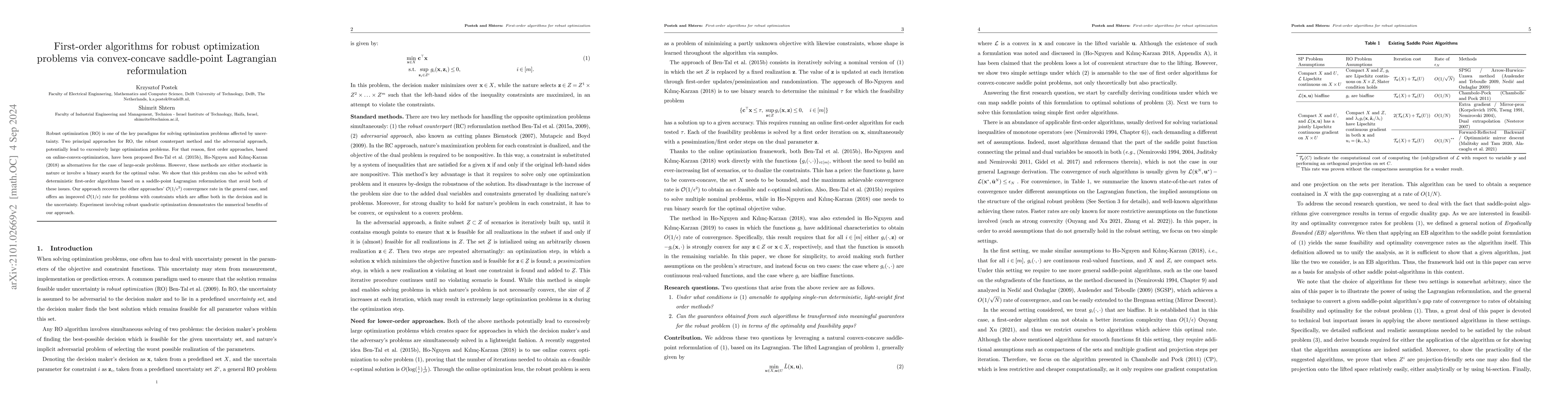 This paper proposes deterministic first-order algorithms for robust optimization problems using a convex-concave saddle-point Lagrangian reformulation. The method achieves O(1/ε) convergence rate for constrained problems and avoids the stochastic nature and binary search issues of existing first-order approaches.