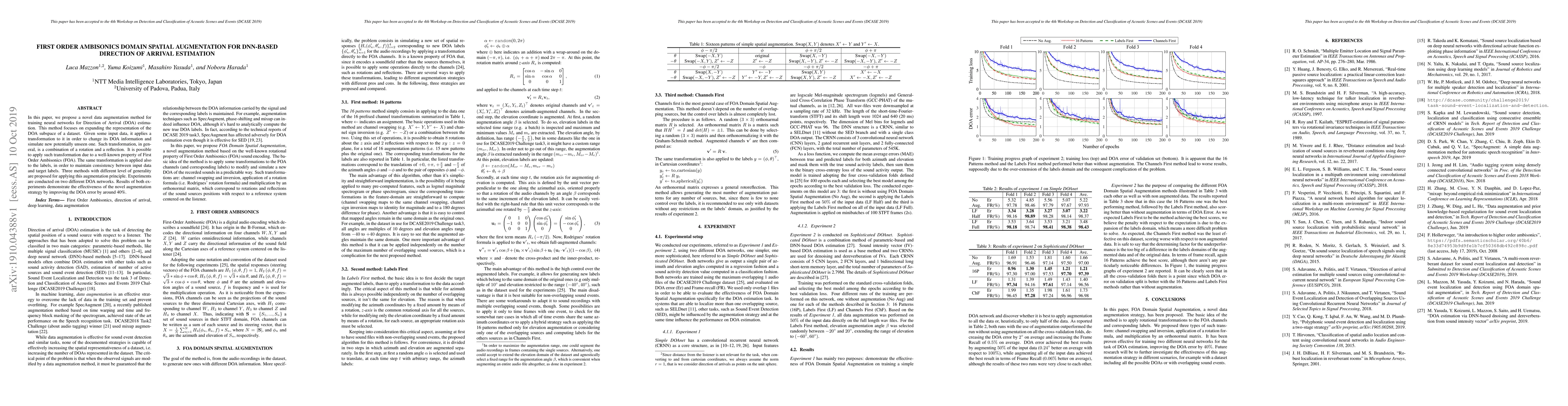 This paper proposes a new data augmentation technique for enhancing neural networks used in Direction of Arrival (DOA) estimation. The method leverages First Order Ambisonics to transform input data and labels, simulating new unseen DOA scenarios, and improves DOA estimation accuracy by approximately 40%.