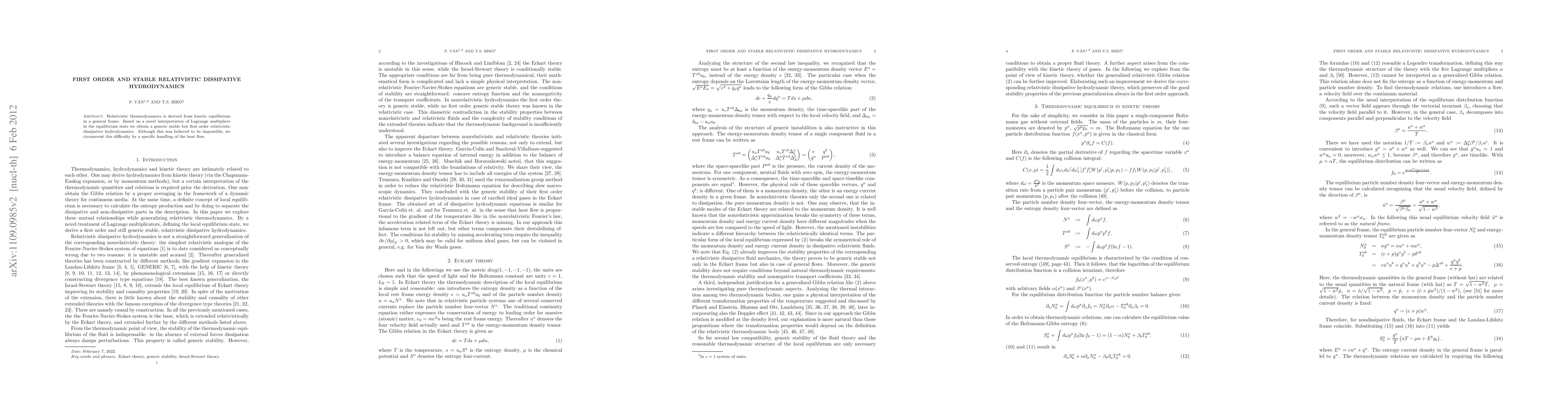 This paper develops a stable first-order relativistic dissipative hydrodynamics model by reinterpreting Lagrange multipliers in kinetic equilibrium, overcoming the previously held belief that such a model was impossible through careful management of heat flow.