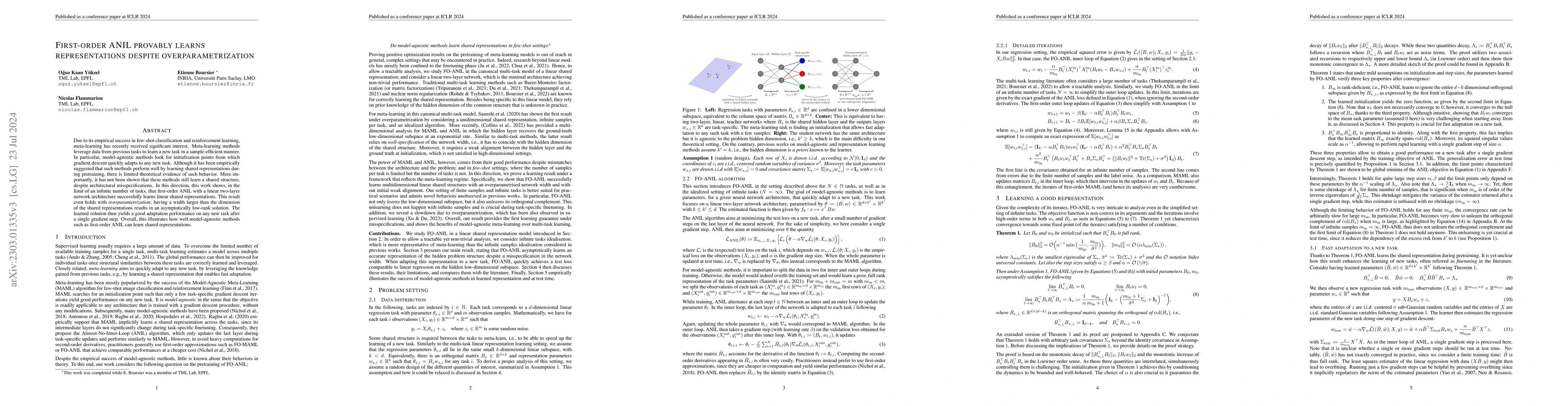 This paper demonstrates that first-order ANIL can effectively learn linear shared representations despite architectural misspecifications, even when the network width exceeds the true latent dimension. The theoretical analysis shows that with an infinite number of tasks, the method achieves an asymptotically low-rank solution, enabling efficient adaptation to new tasks.