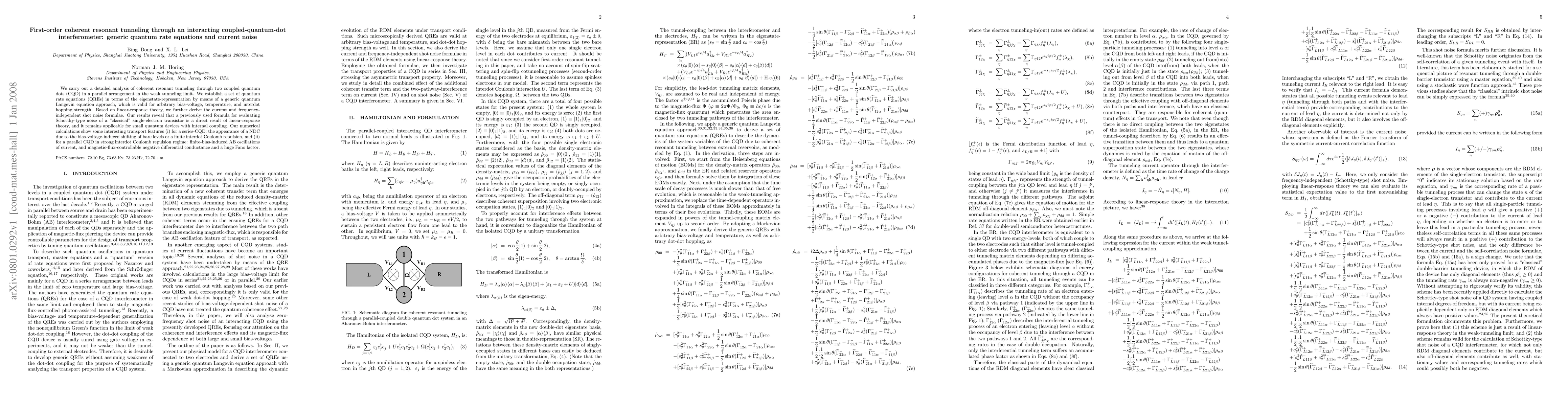 This paper analyzes coherent resonant tunneling through two coupled quantum dots in a parallel arrangement, establishing quantum rate equations and deriving current noise formulas. It reveals transport features such as negative differential conductance and Aharonov-Bohm oscillations, showing applicability of classical noise formulas in small quantum devices.