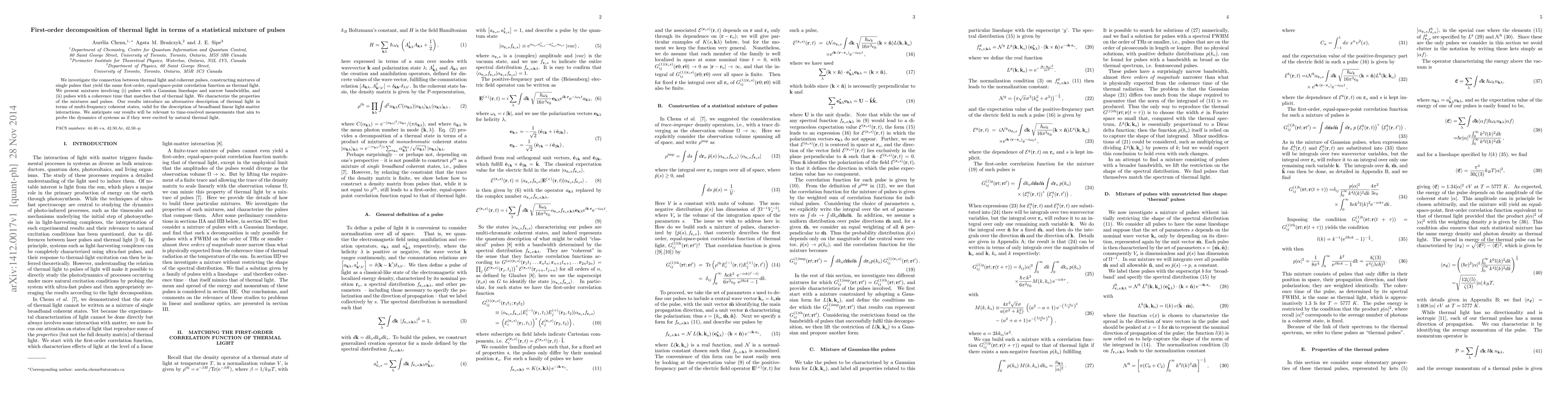 Researchers developed a new way to describe thermal light using a mixture of coherent pulses, offering an alternative to existing models for studying broadband linear light-matter interactions.