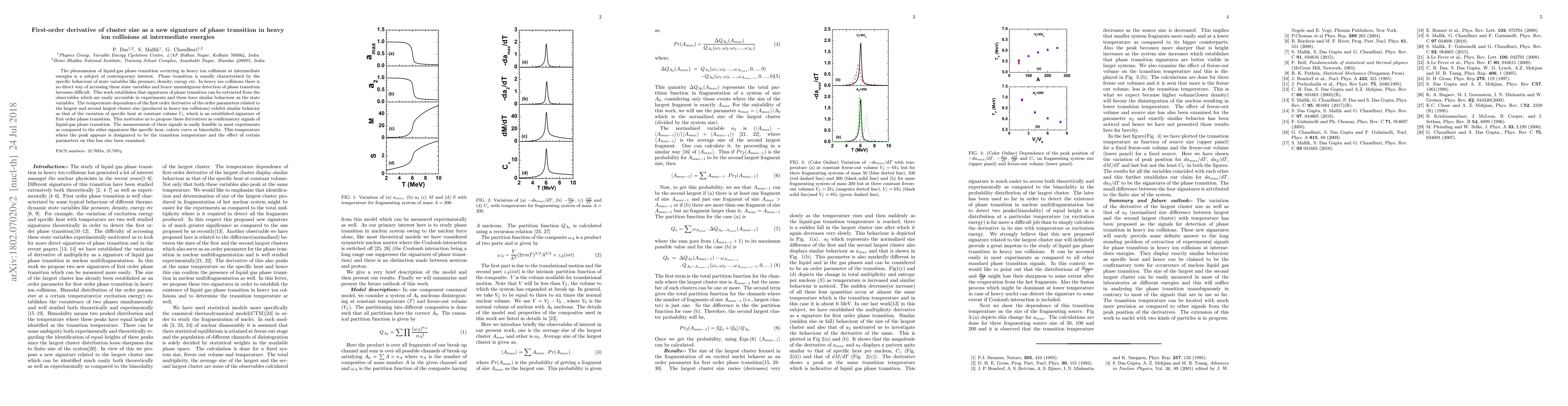 This paper proposes that the first-order derivative of cluster size in heavy ion collisions serves as a new signature for detecting liquid-gas phase transitions at intermediate energies. The study finds that these derivatives exhibit behavior similar to established signatures like specific heat, facilitating easier experimental detection compared to traditional methods.