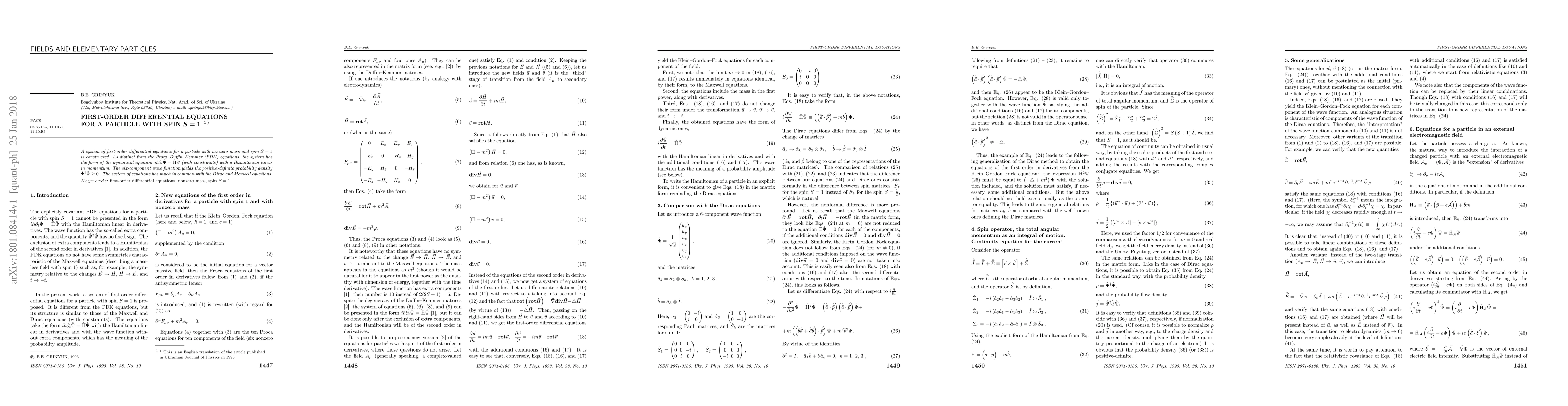 A system of first-order differential equations for a particle with nonzero mass and spin $S = 1$ is constructed. As distinct from the Proca-Duffin-Kemmer (PDK) equations, the system has the form of the dynamical equation $i\hbar\partial_t\hat{\Psi}=\hat{\mathrm{H}}\hat{\Psi}$ (with constraints) with a Hamiltonian linear in momentum. The six-component wave function yields the positive-definite probability density $\hat{\Psi}^{\dagger}\hat{\Psi}\geq 0$. The system of equations has much in common with the Dirac and Maxwell equations.