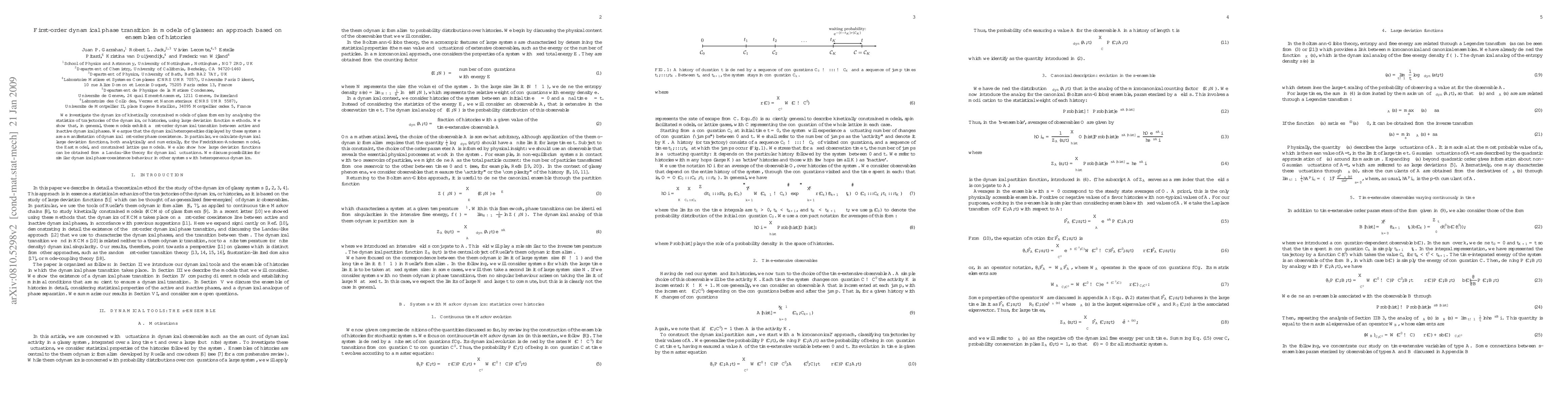 This paper investigates kinetically constrained models of glass formers, revealing a first-order dynamical phase transition between active and inactive phases through large deviation function methods. The study demonstrates dynamical heterogeneities as a sign of first-order phase coexistence, with analytical and numerical calculations on several models.