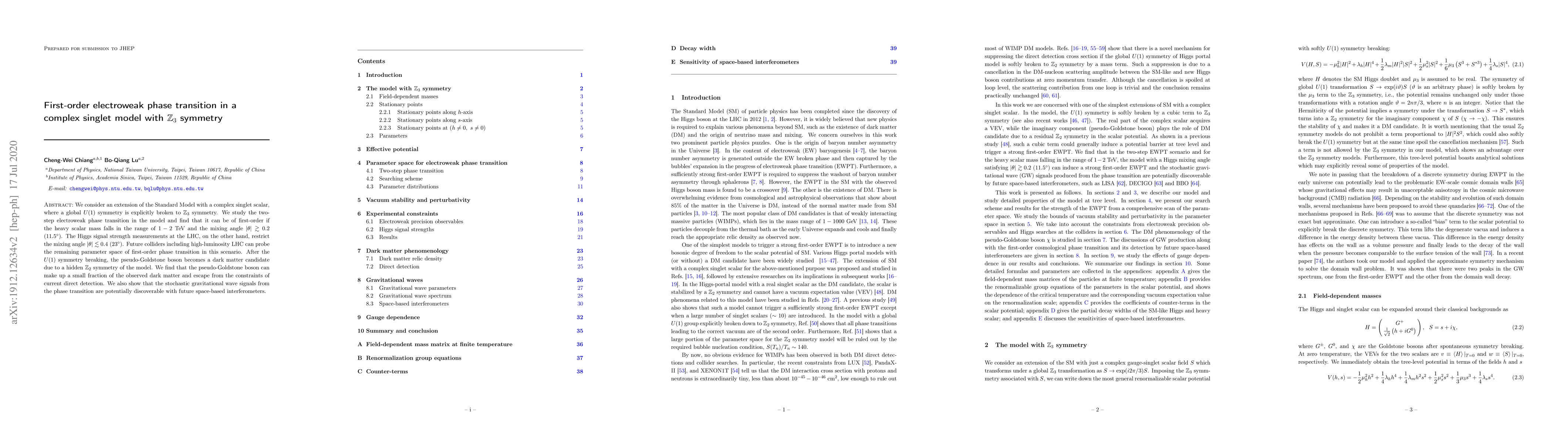 Researchers explore a complex singlet model with Z3 symmetry, finding that it can undergo a first-order electroweak phase transition at TeV scales, which could be detectable at future colliders and has implications for dark matter and gravitational wave detection.