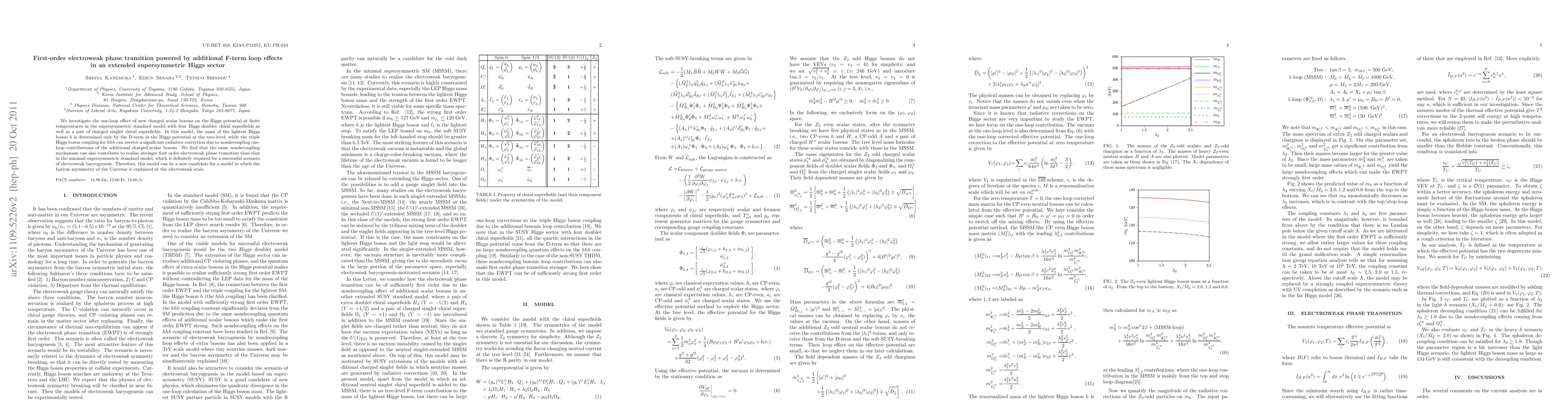 This paper explores how additional charged scalar bosons in an extended supersymmetric model with four Higgs doublets can significantly alter the Higgs potential at finite temperatures, leading to a stronger first-order electroweak phase transition and potentially explaining the baryon asymmetry of the Universe. The model's unique radiative corrections enhance the triple Higgs boson coupling and contribute to the required conditions for electroweak baryogenesis.