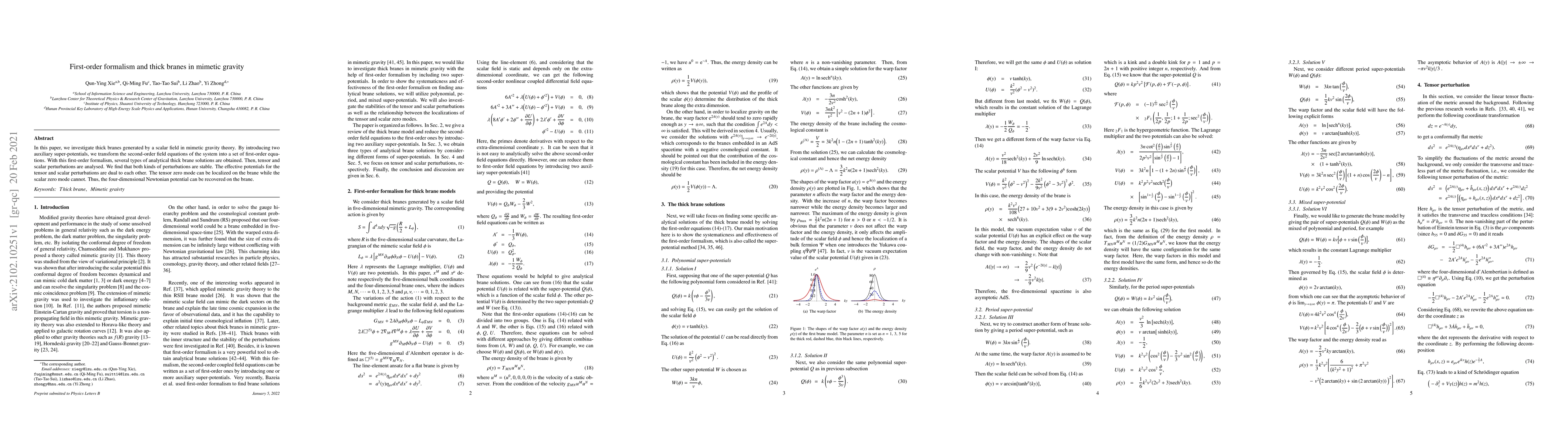 This paper explores thick branes in mimetic gravity using a first-order formalism, deriving analytical solutions and analyzing their stability against tensor and scalar perturbations. The study shows that both perturbations are stable, with dual effective potentials, and the tensor zero mode can be localized on the brane, enabling the recovery of the four-dimensional Newtonian potential.