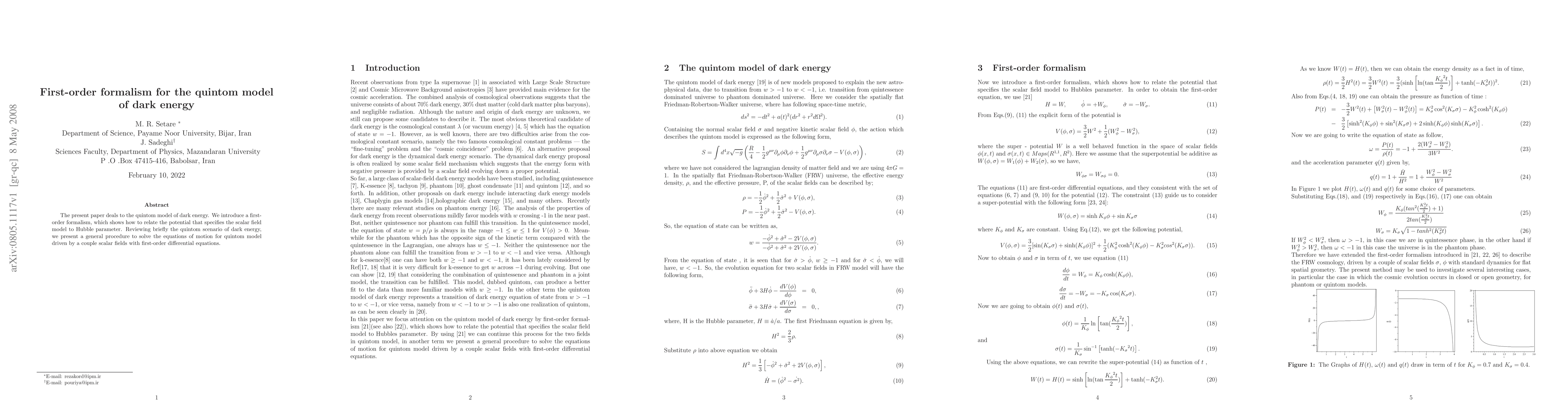 This paper presents a first-order formalism for the quintom model of dark energy, connecting the scalar field potential to the Hubble parameter. It outlines a method to solve the equations of motion for a quintom model involving coupled scalar fields using first-order differential equations.