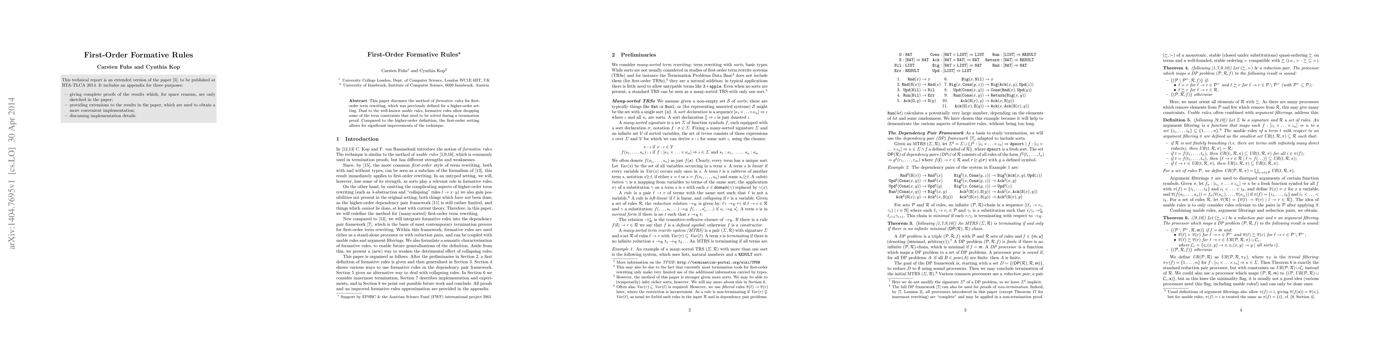 This paper discusses the method of formative rules for first-order term rewriting, which was previously defined for a higher-order setting. Dual to the well-known usable rules, formative rules allow dropping some of the term constraints that need to be solved during a termination proof. Compared to the higher-order definition, the first-order setting allows for significant improvements of the technique.