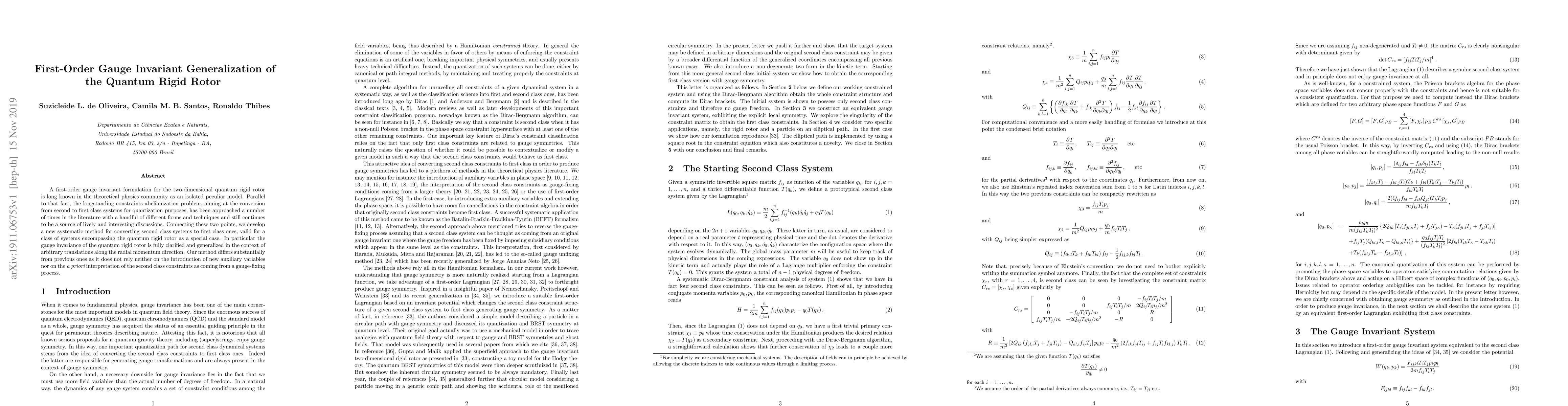 A first-order gauge invariant formulation for the two-dimensional quantum rigid rotor is long known in the theoretical physics community as an isolated peculiar model. Parallel to that fact, the longstanding constraints abelianization problem, aiming at the conversion from second to first class systems for quantization purposes, has been approached a number of times in the literature with a handful of different forms and techniques and still continues to be a source of lively and interesting discussions. Connecting these two points, we develop a new systematic method for converting second class systems to first class ones, valid for a class of systems encompassing the quantum rigid rotor as a special case. In particular the gauge invariance of the quantum rigid rotor is fully clarified and generalized in the context of arbitrary translations along the radial momentum direction. Our method differs substantially from previous ones as it does not rely neither on the introduction of new auxiliary variables nor on the a priori interpretation of the second class constraints as coming from a gauge-fixing process.