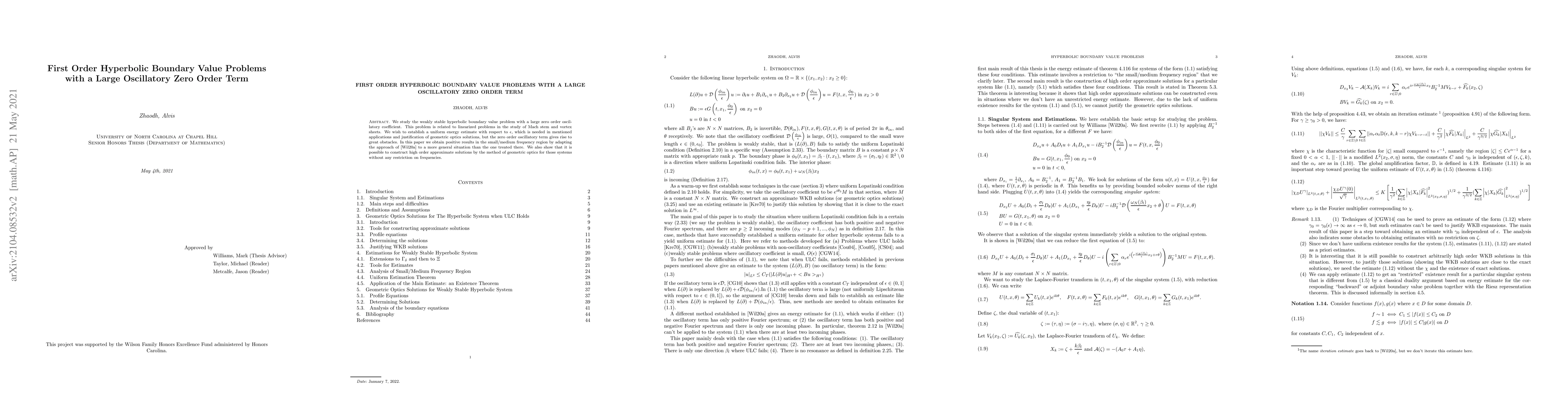 This paper investigates hyperbolic boundary value problems with a large oscillatory term, establishing a uniform energy estimate for small/medium frequency regions and demonstrating the applicability of geometric optics solutions without frequency restrictions.